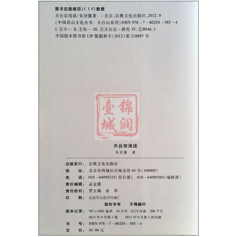天台宗浅谈 朱封鳌 中国名山文化丛书天台山系列