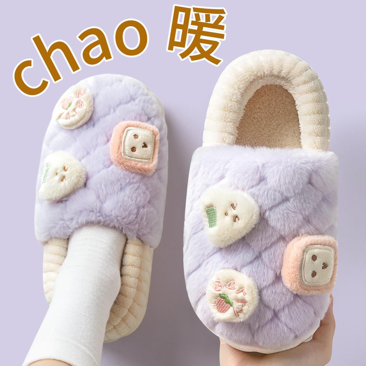朴西朵朵绒情侣毛绒棉拖鞋 女士2025秋冬保暖防滑居家室内加绒棉拖