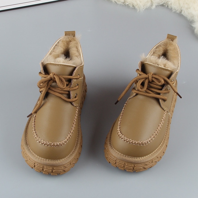 皮毛一体加厚保暖防滑情侣棉鞋 时尚 低帮全羊毛雪地靴女2025冬新款