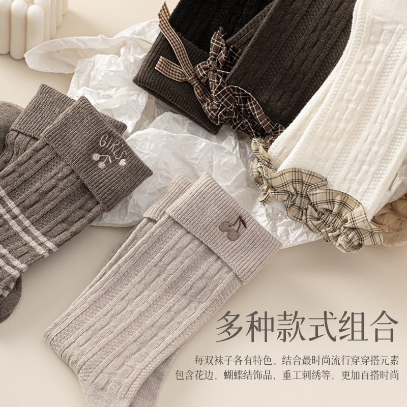 小腿袜子女春秋中筒袜显瘦花边jk袜白色堆堆袜搭配靴子长筒袜秋冬