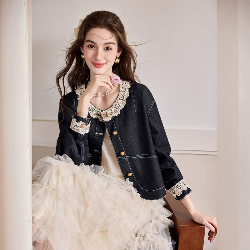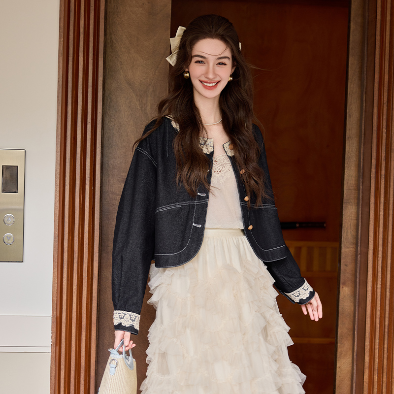 Lilbetter原牛短宽版 外套 哥萨克牛仔夹克2025秋明线设计翻领工装
