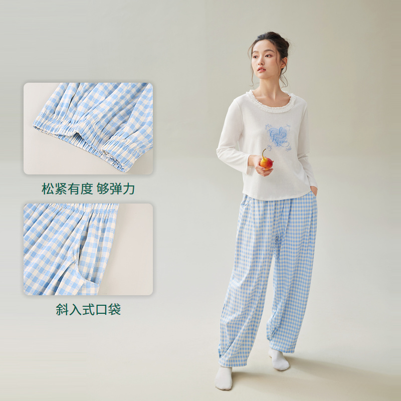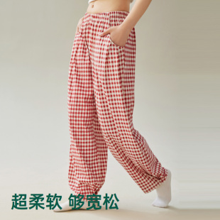 巨柔软 家居裤 春秋季 纯棉格子裤 可外穿 女士新款 安之伴