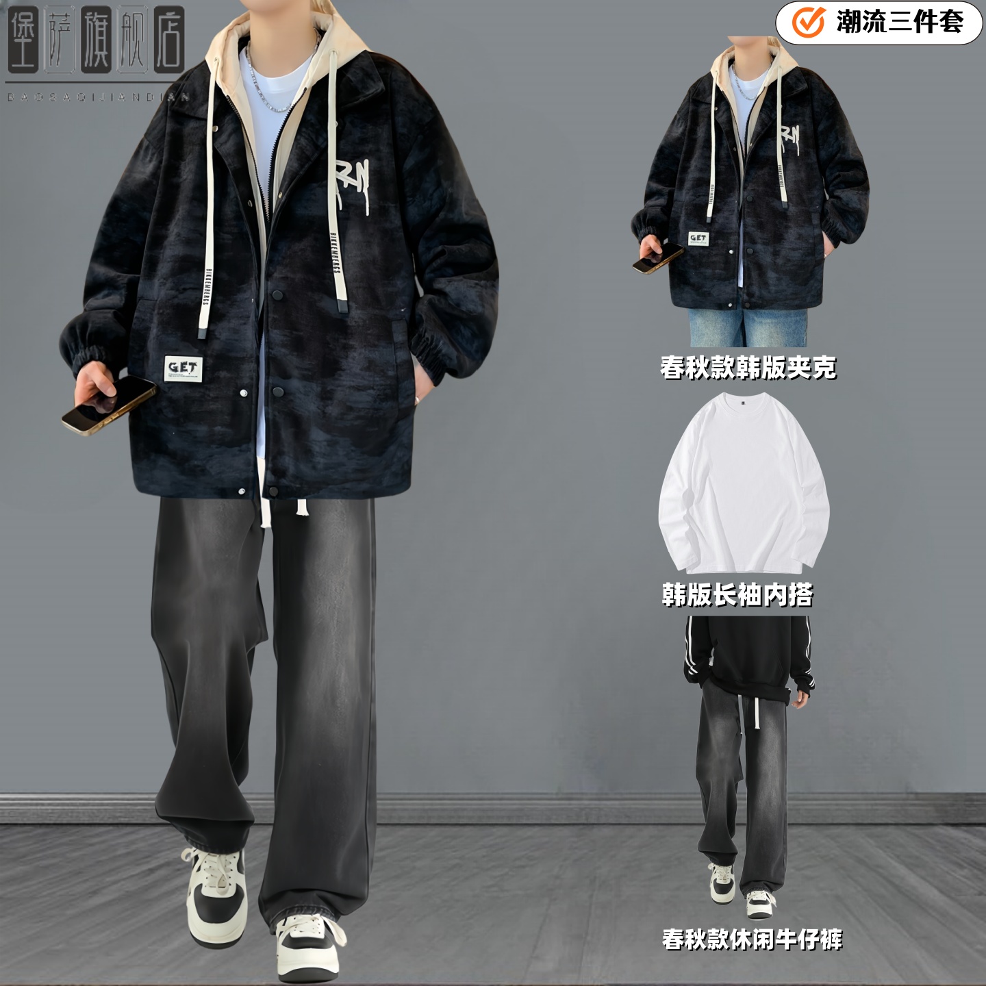 百搭复古潮流男士 罗蒙2025秋季 休闲翻领外套男款 美式 夹克上衣 新款