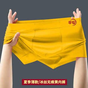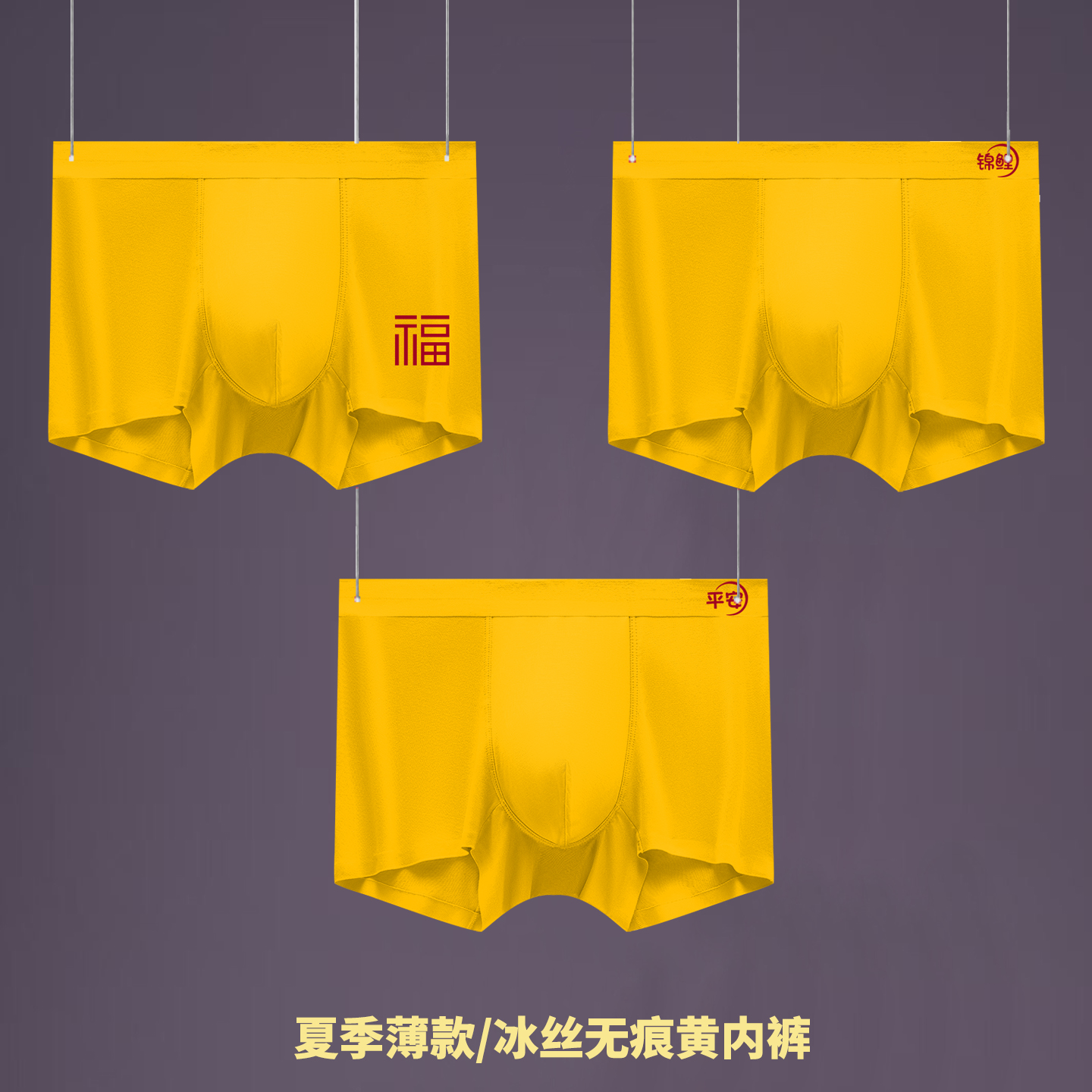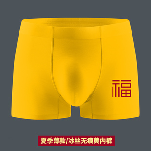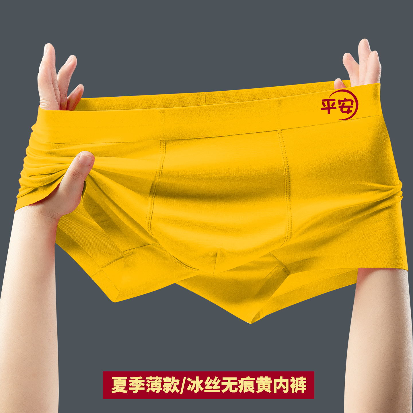 四角裤 本命年本历年结婚逢九无痕莫代尔冰丝底裤 男士 黄色内裤