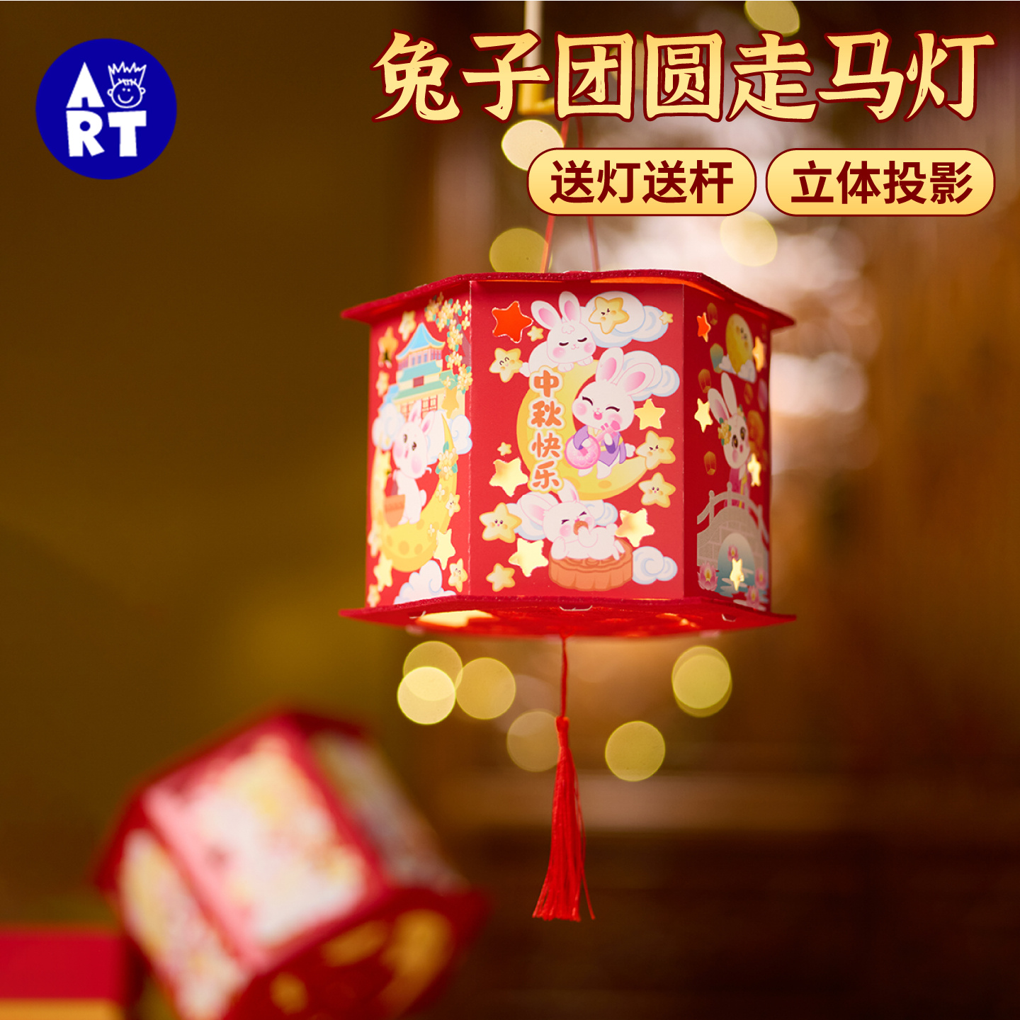 中秋节投影兔子团圆走马灯手工diy灯笼儿童制作材料包幼儿园花灯