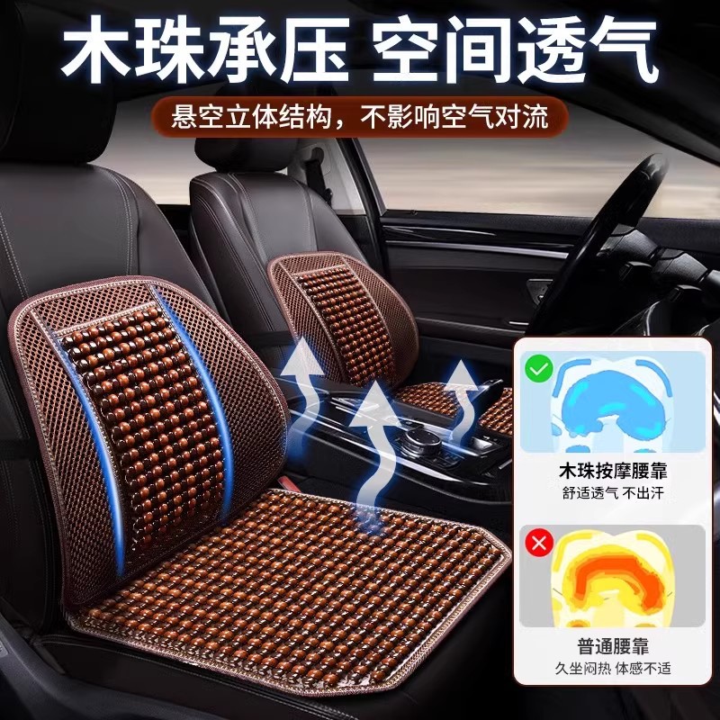 汽车腰靠垫护腰背靠垫夏季 座椅车靠腰部支撑木珠透气腰托靠枕车用