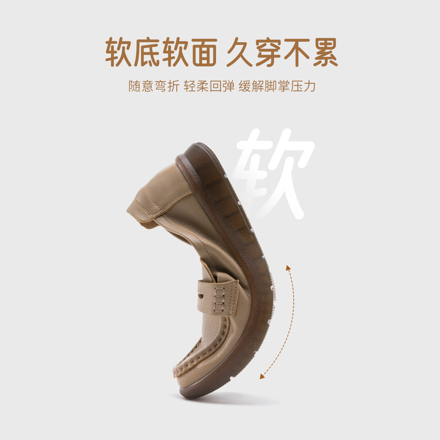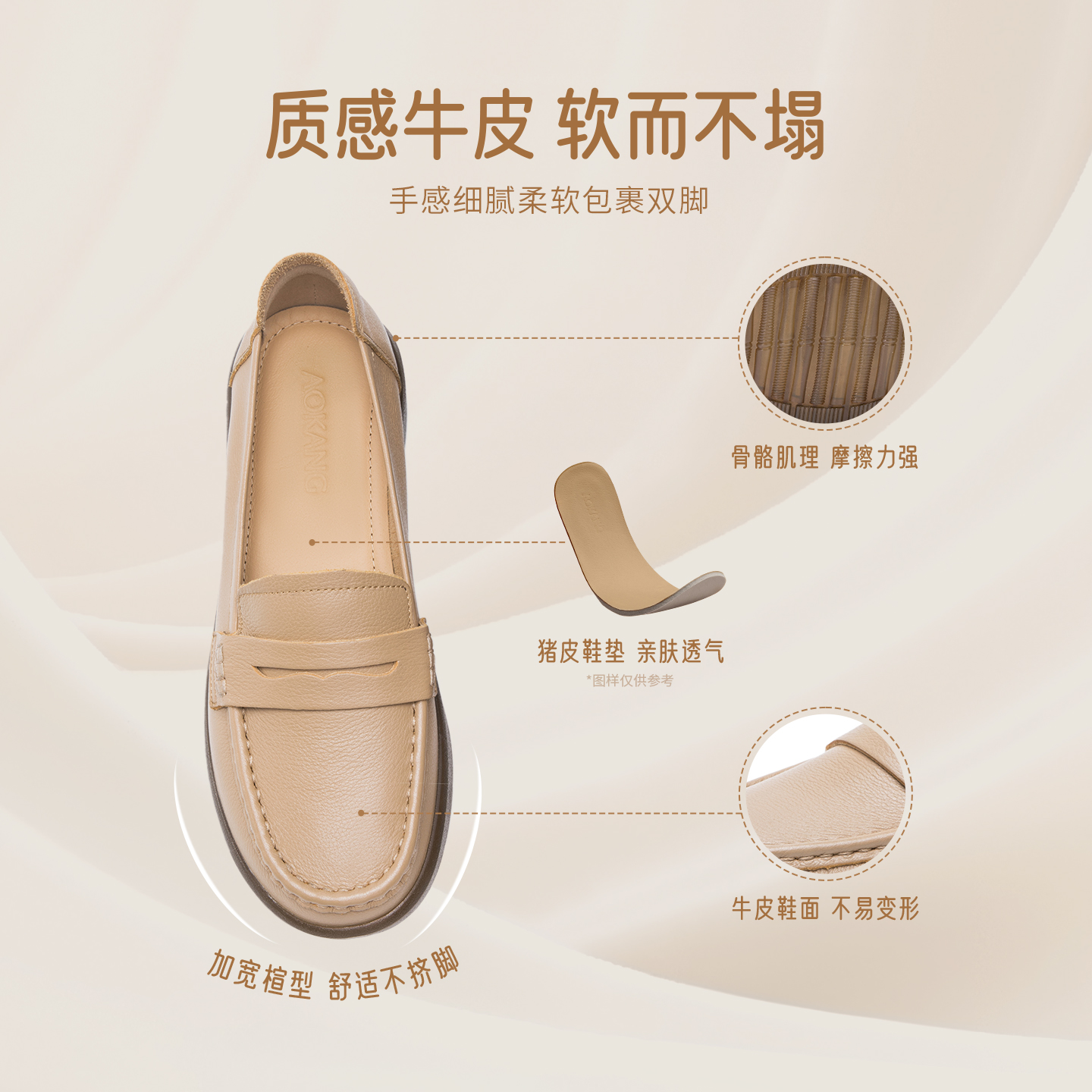 新款 2025秋季 妈妈单鞋 真皮软底中老年鞋 奥康 子平底乐福皮鞋 女鞋