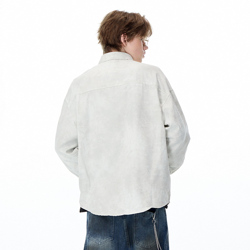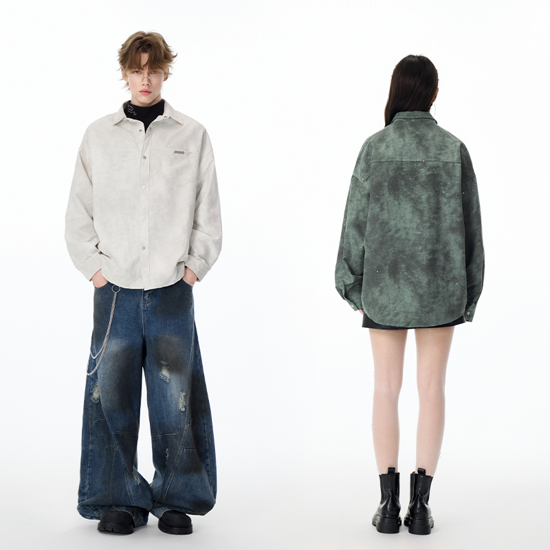 V37美式 男秋高街痞帅休闲衬衣宽松复古情侣外套 撞色扎染格子衬衫