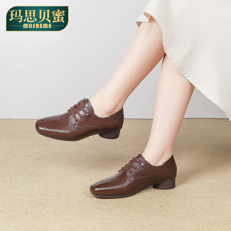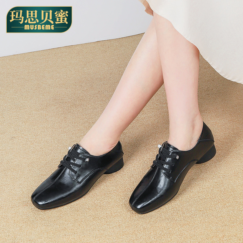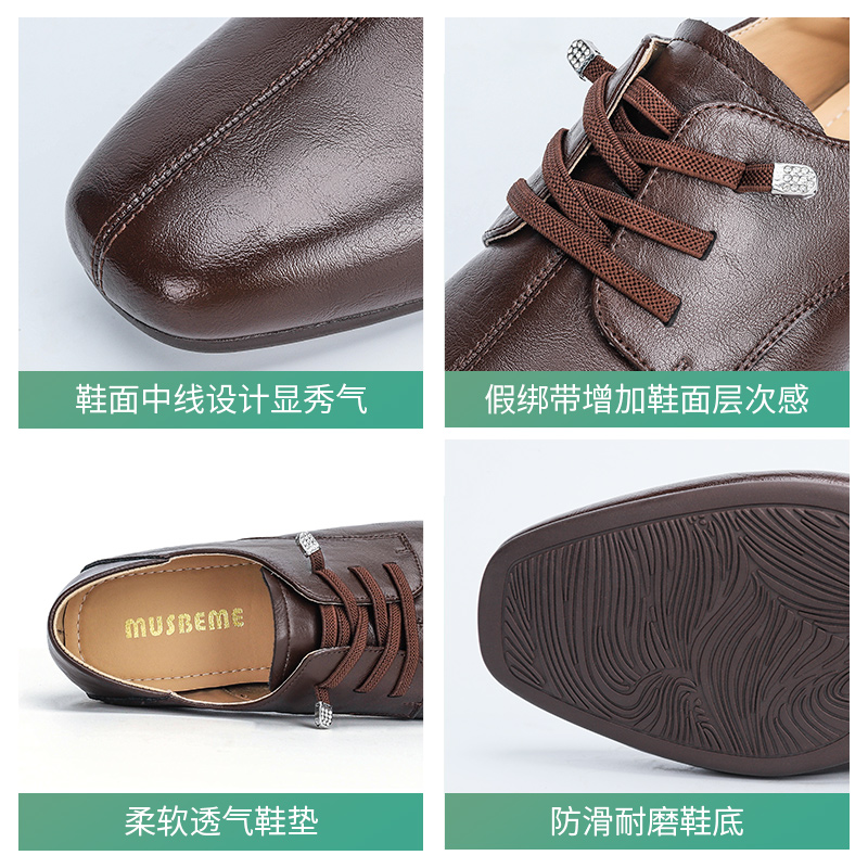 系带小皮鞋 妈妈鞋 舒适大码 春秋单鞋 真皮牛皮软底透气方头中年女鞋