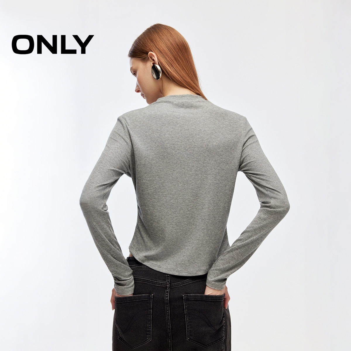 纯色弹力长袖 莱赛尔舒适两侧捏褶螺纹修身 T恤女 新款 ONLY2025秋季