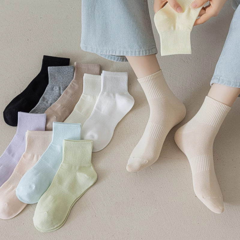 女生运动袜 爆款 白色袜子女款 中筒袜春秋纯棉长袜女士棉袜2025新款