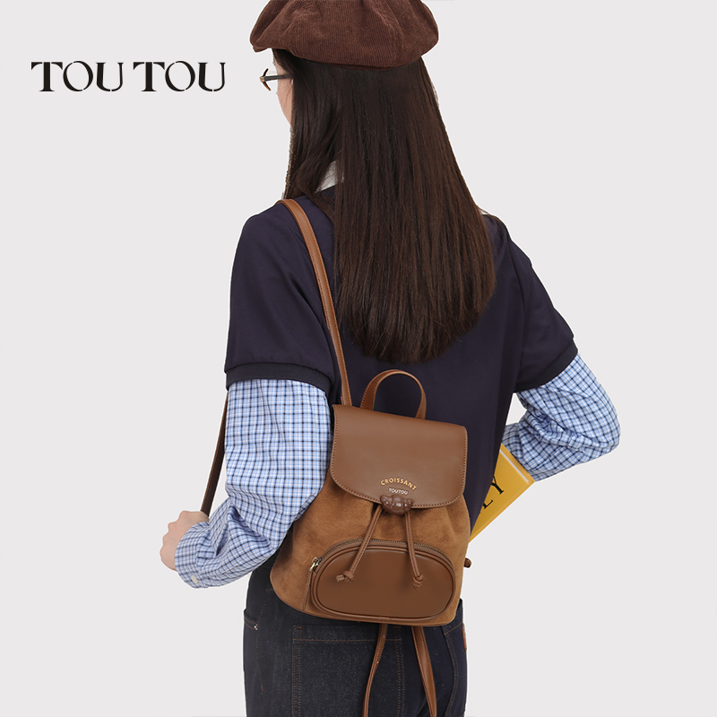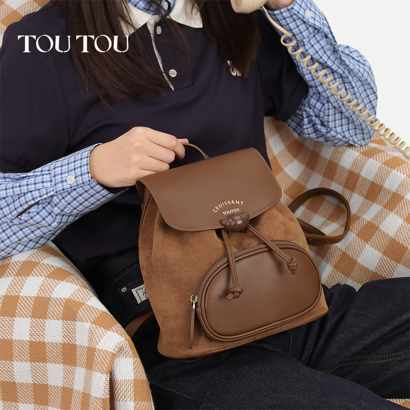TOUTOU2025新款 牛角麂皮绒双肩包大容量高级感通勤百搭旅行小背包