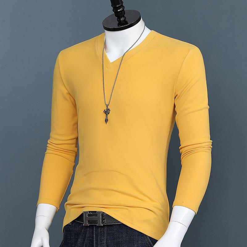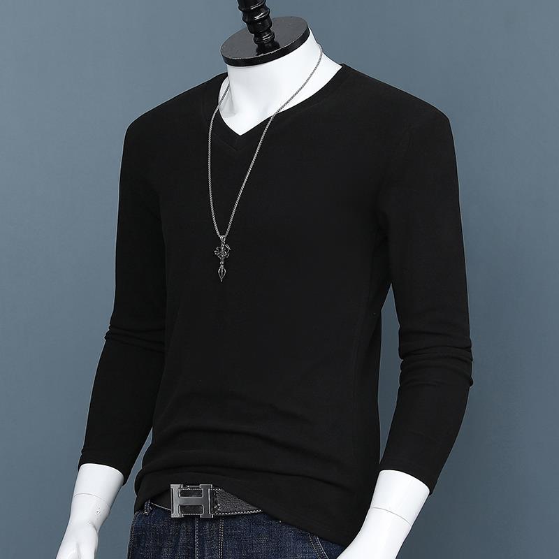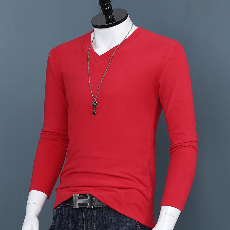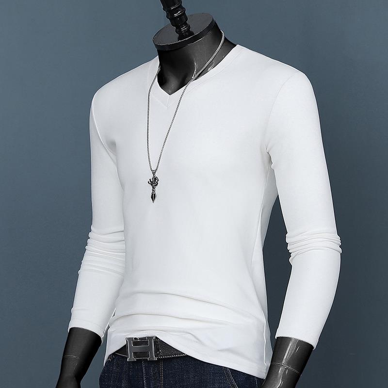 德绒v领长袖 t恤大码 打底衫 双面绒色修身 保暖秋衣0901h 秋冬季 男士