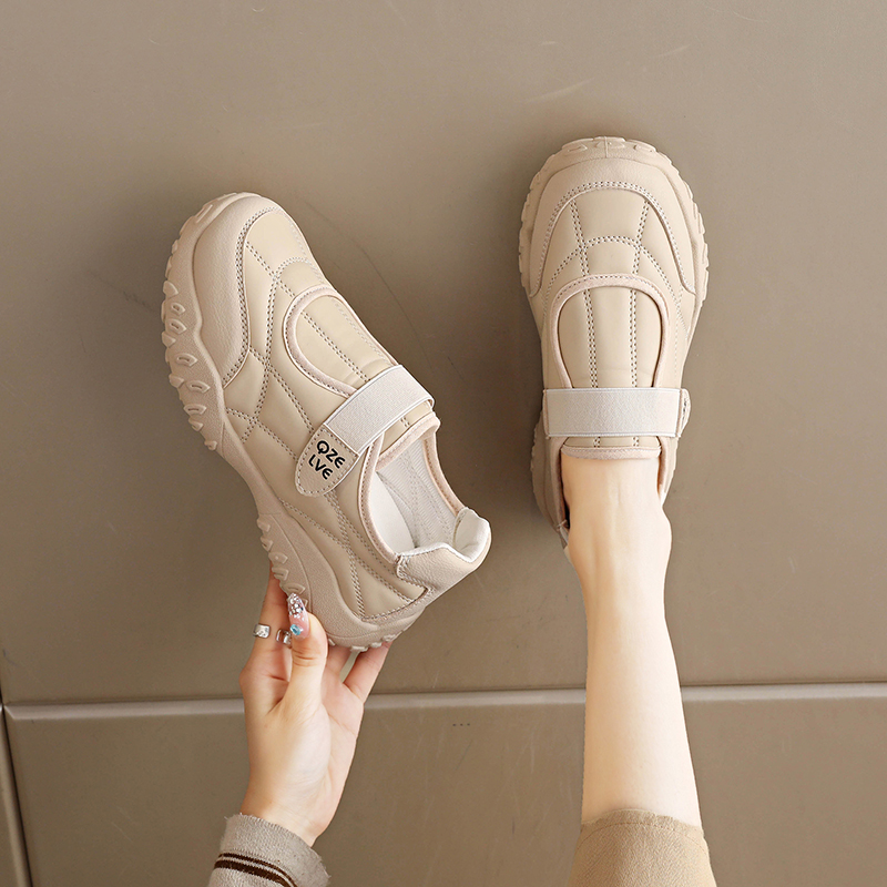 绝美气质通勤平底鞋 小个子内增高裸色方扣浅口单鞋 女2025春夏新款