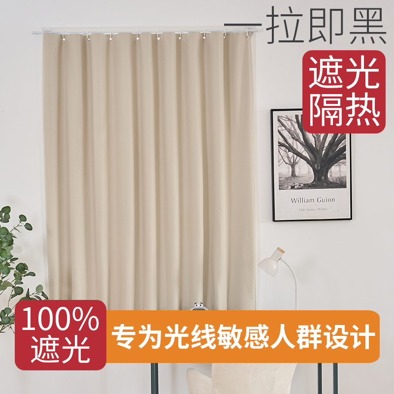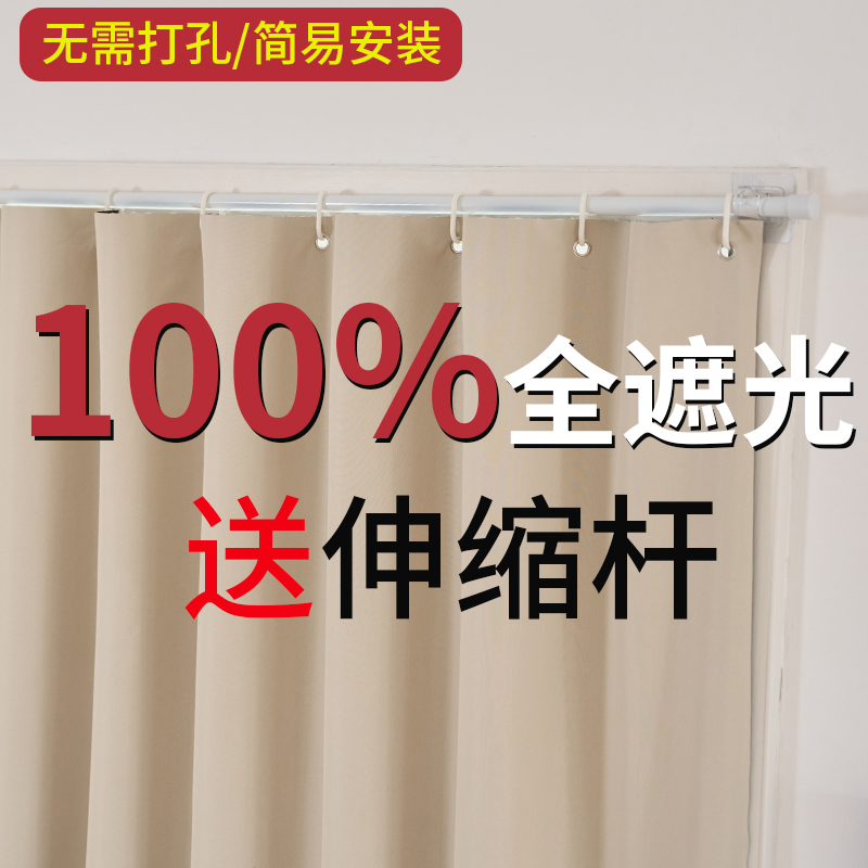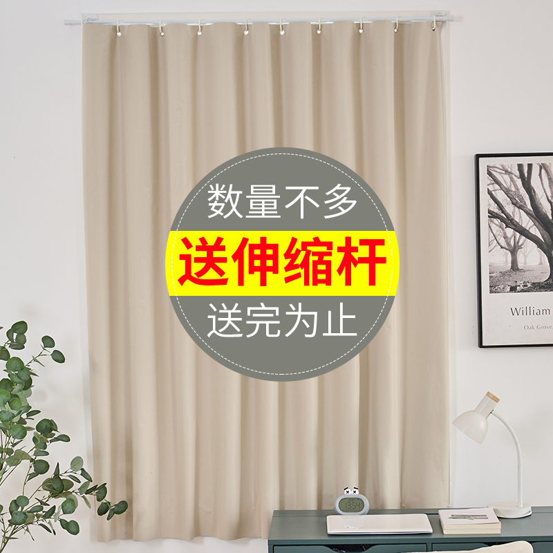 窗帘免打孔安装 送伸缩杆遮光遮阳帘布简易小窗户短窗帘出租房宿舍