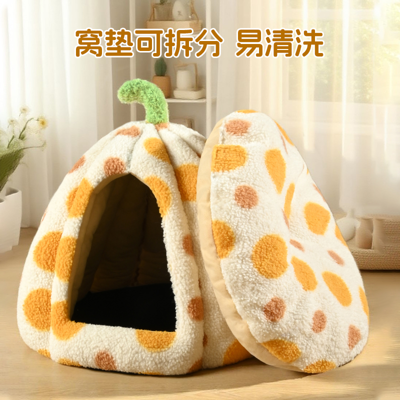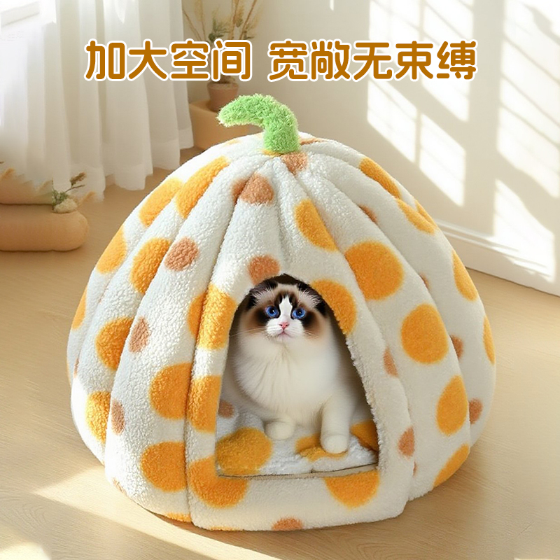 冬季 半宠物圆形冬日狗窝冬猫咪安全感睡窝加厚猫屋 猫窝保暖封闭式