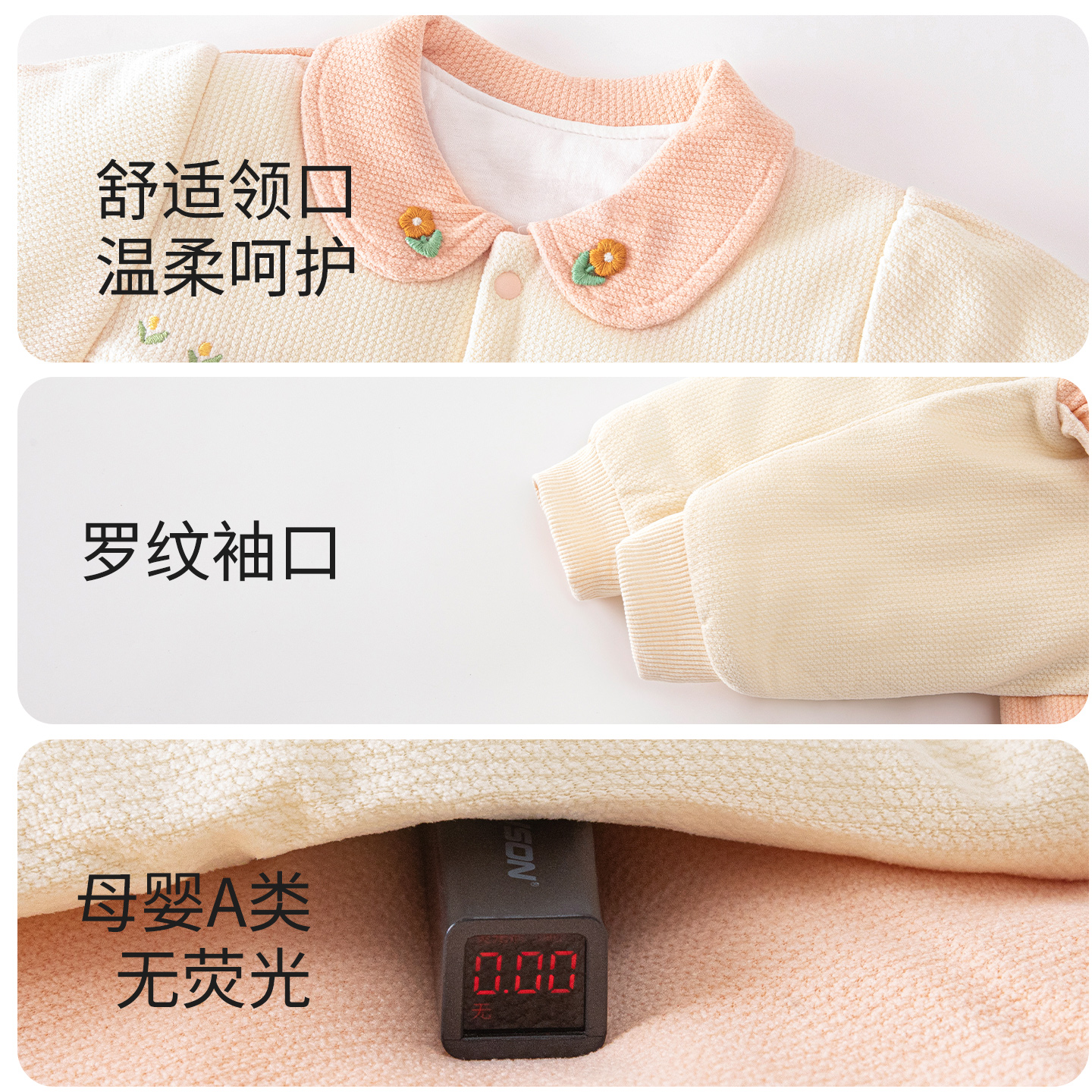 2025新款 保暖加厚棉衣服婴幼儿公主哈衣爬服 女宝宝夹棉连体衣冬季