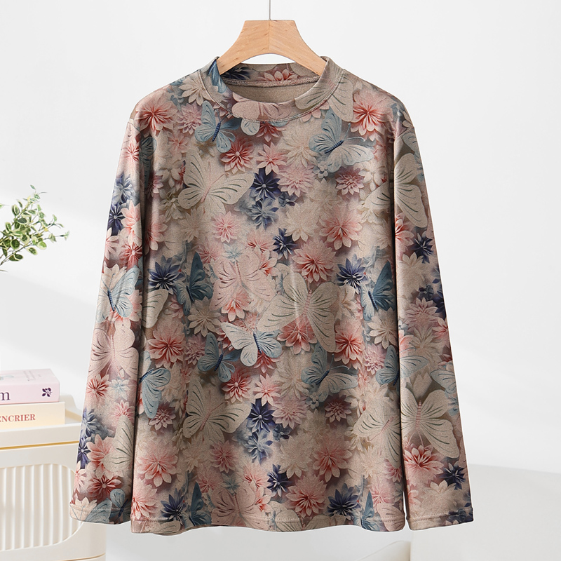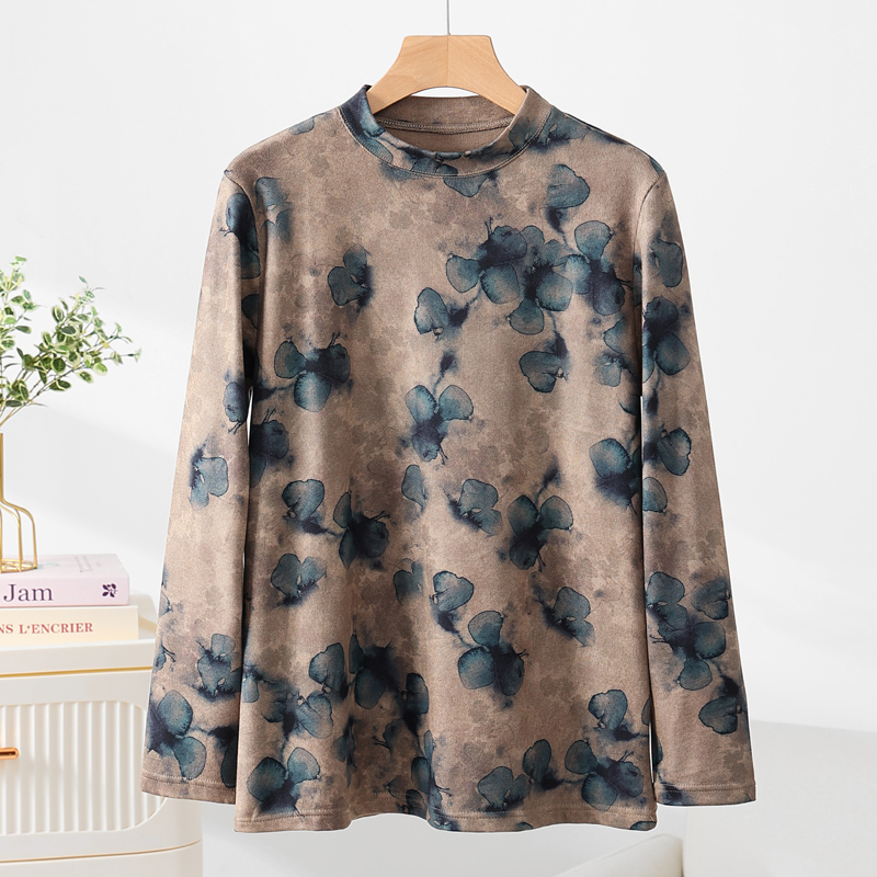 秋衣弹力大码 中领长袖 时尚 中老年女士双面磨绒保暖上衣妈妈打底衫