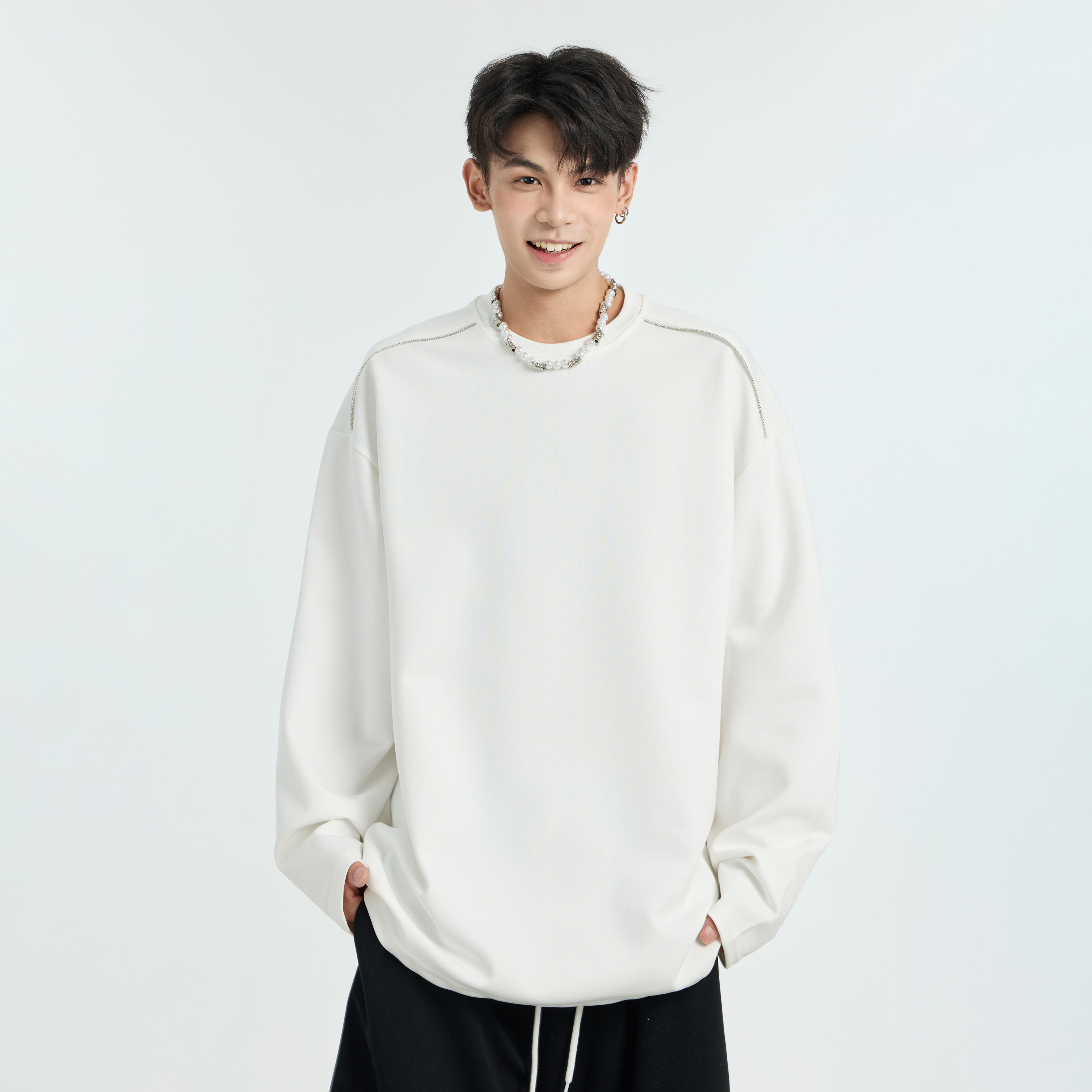 重磅宽松情侣打底衫 美式 T恤男款 GKKRT潮牌设计感加绒加厚纯色长袖