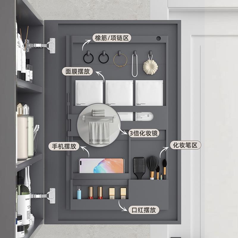 官方正品 镜柜美妆免打孔浴室柜镜柜门后置物架镜背板化妆品收纳架