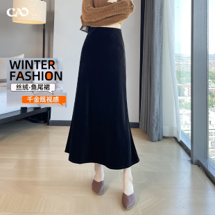 秋冬复古加厚醋酸缎面半身裙女秋季 显瘦鱼尾裙子半裙长裙 2025新款