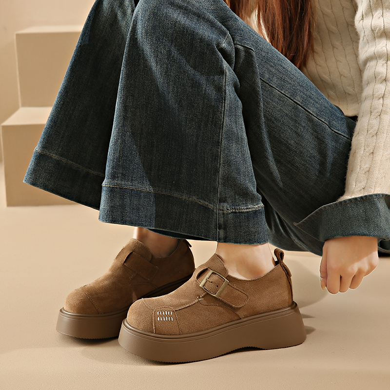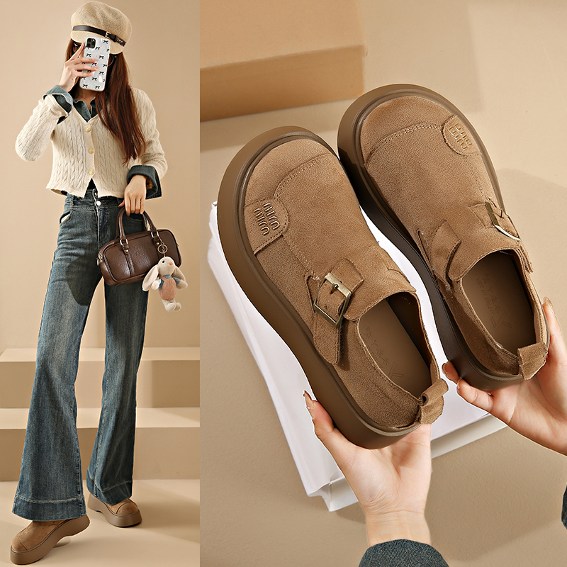增高单鞋 新款 软底百搭小皮鞋 真皮乐福鞋 厚底勃肯鞋 34码 女2025秋季