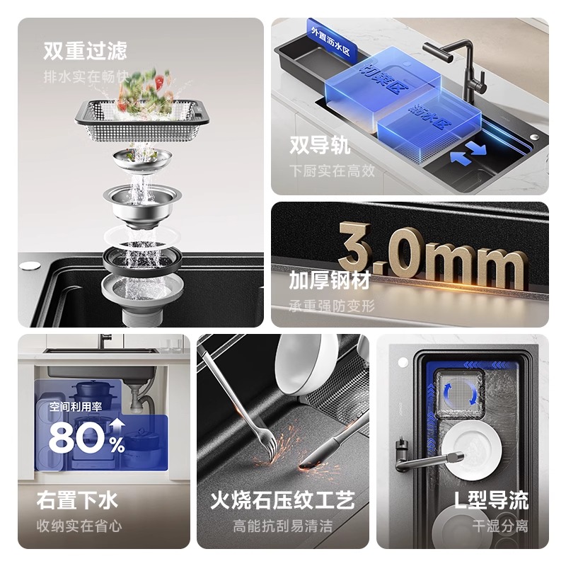 九牧魔法师厨房水槽大单槽洗菜盆304不锈钢枪灰锻打纹加厚台下盆