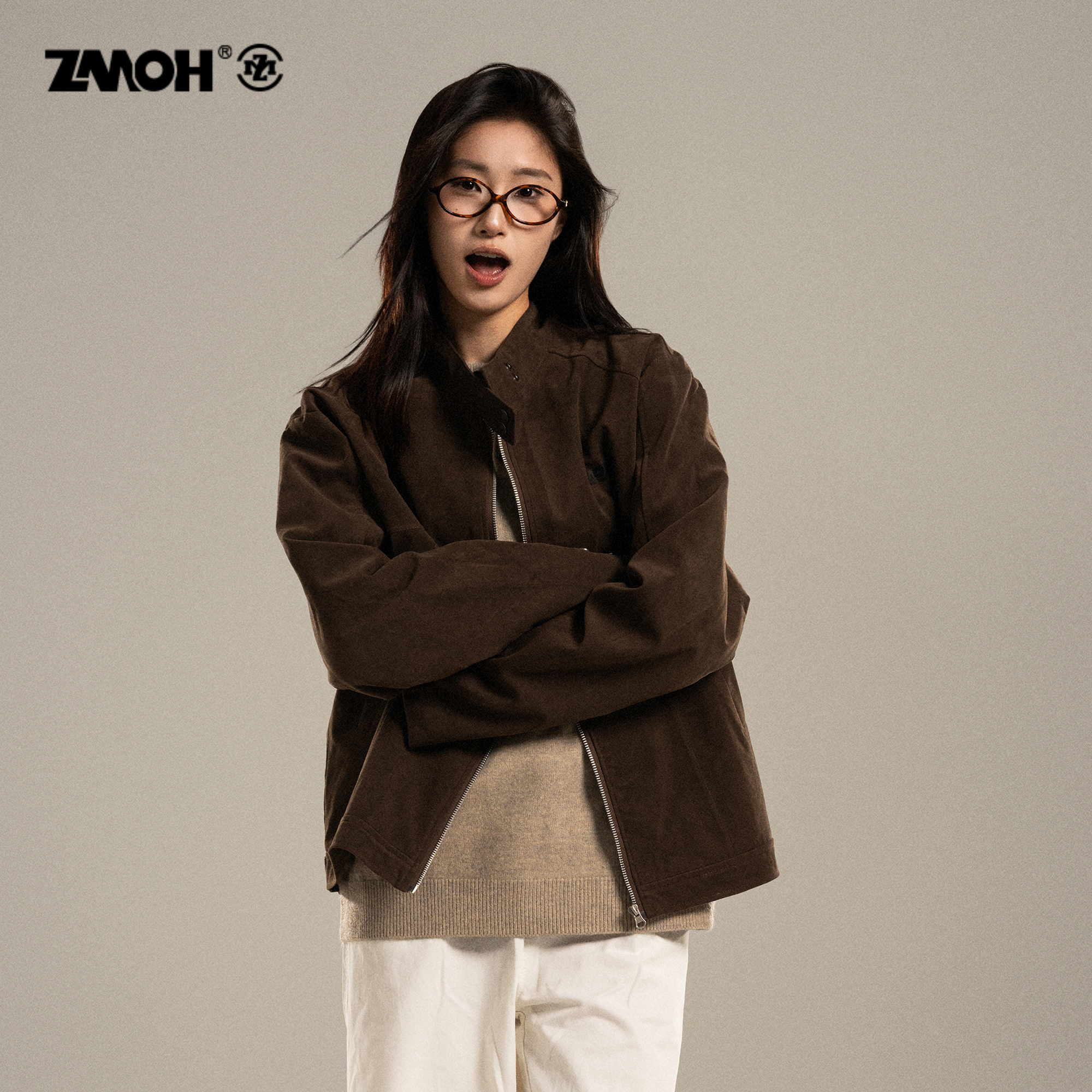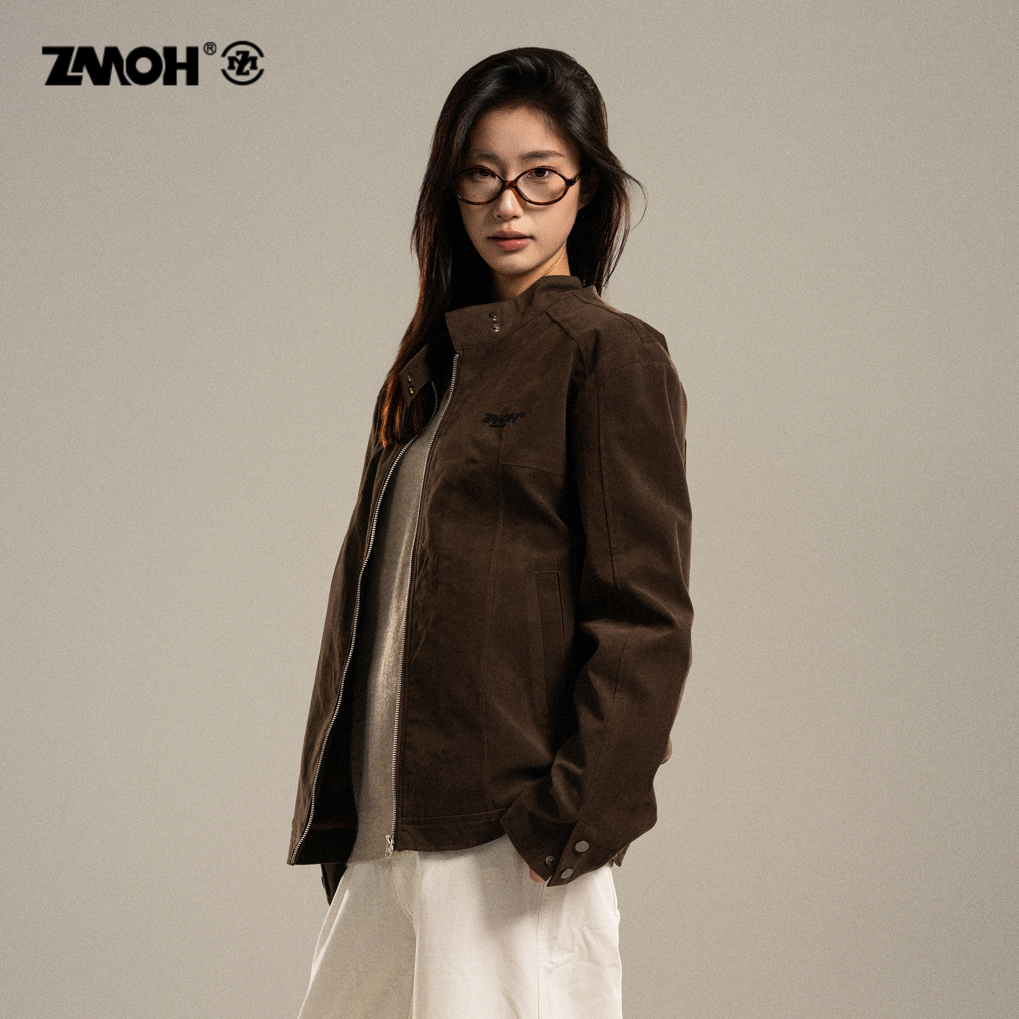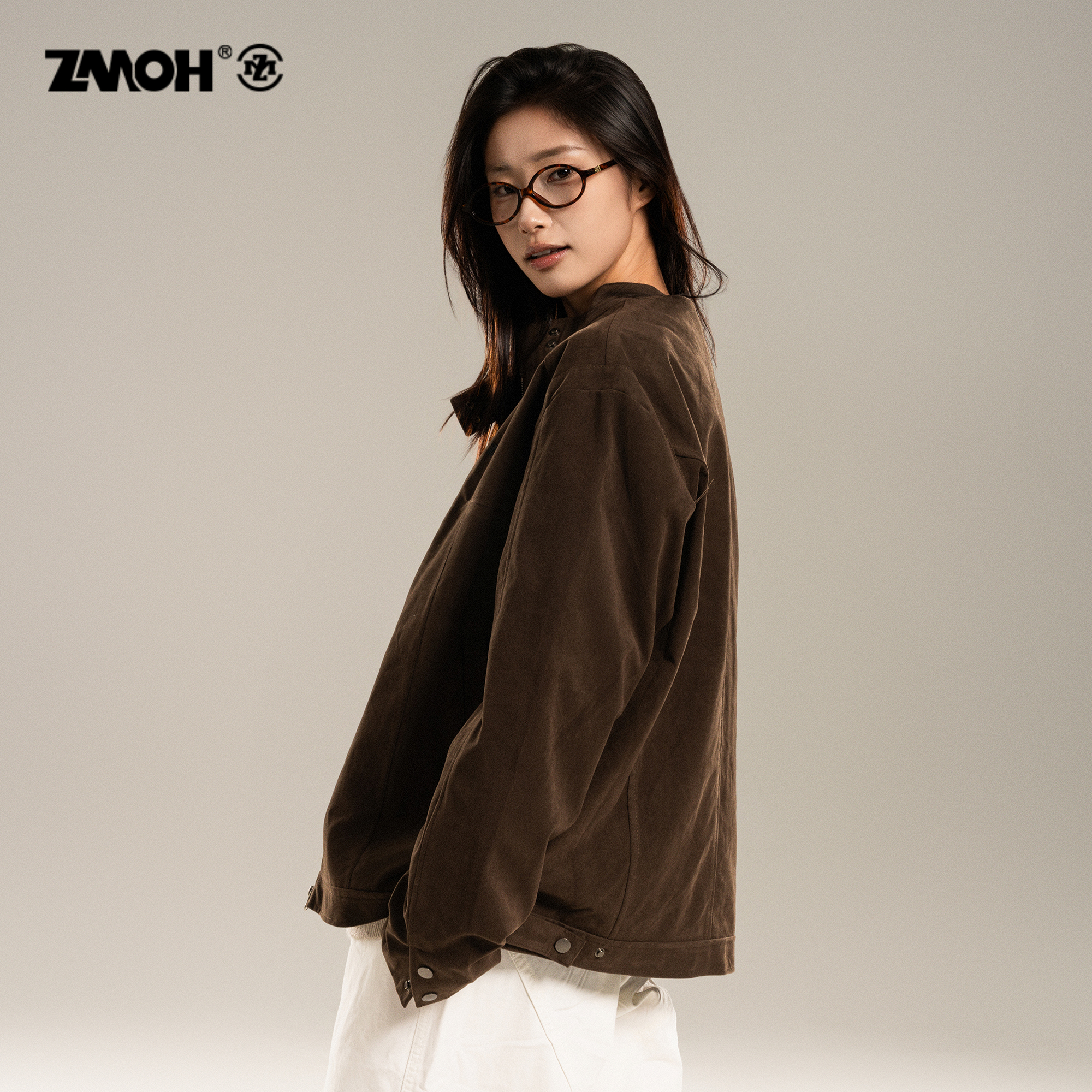 美式 情侣款 宽松复古休闲潮牌拉链外套 夹克 RASS休闲百搭翻领衬衫