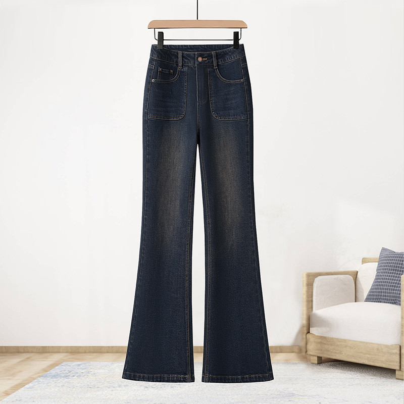 子 高腰宽松显瘦小个子八九分毛边阔腿裤 加绒直筒牛仔裤 女秋冬新款