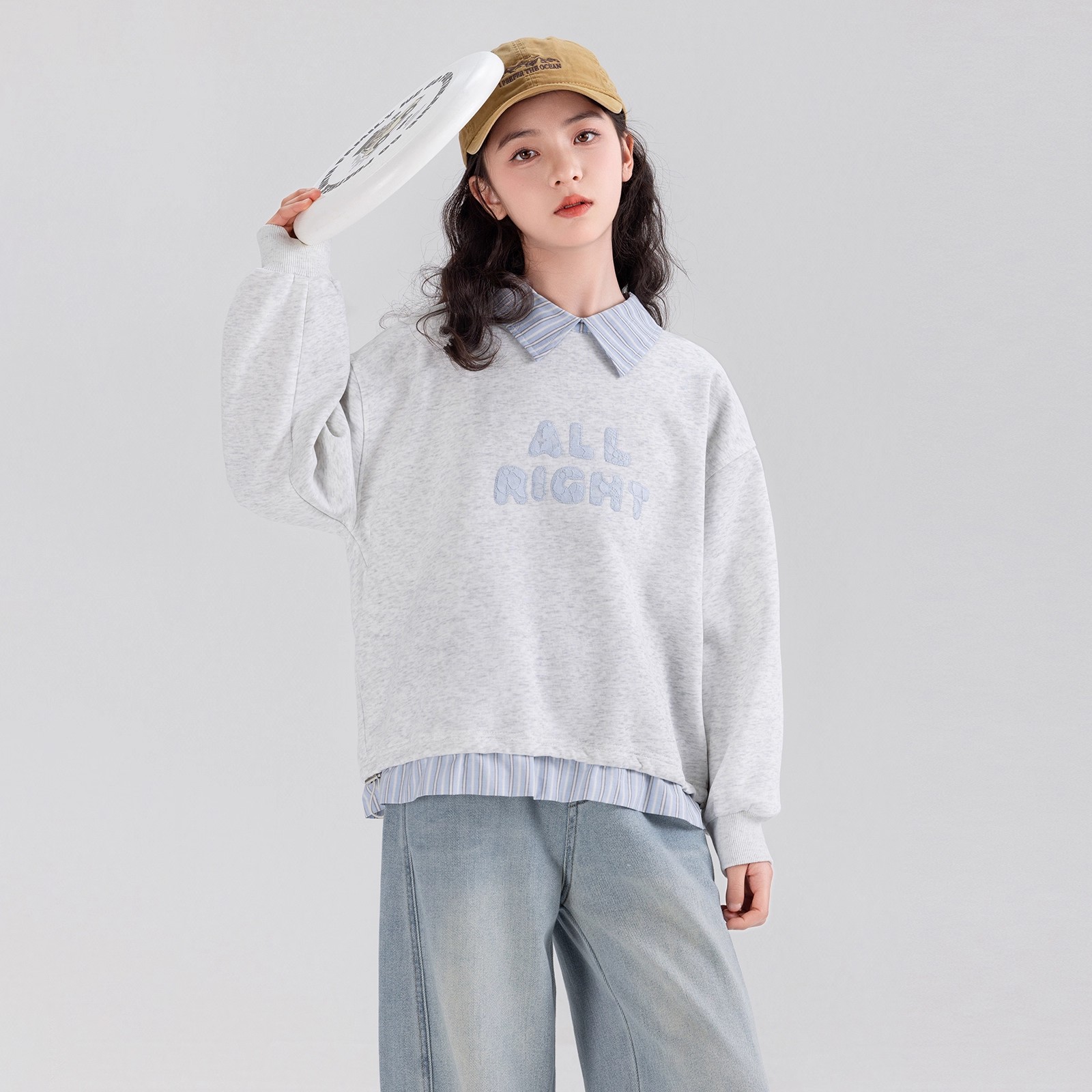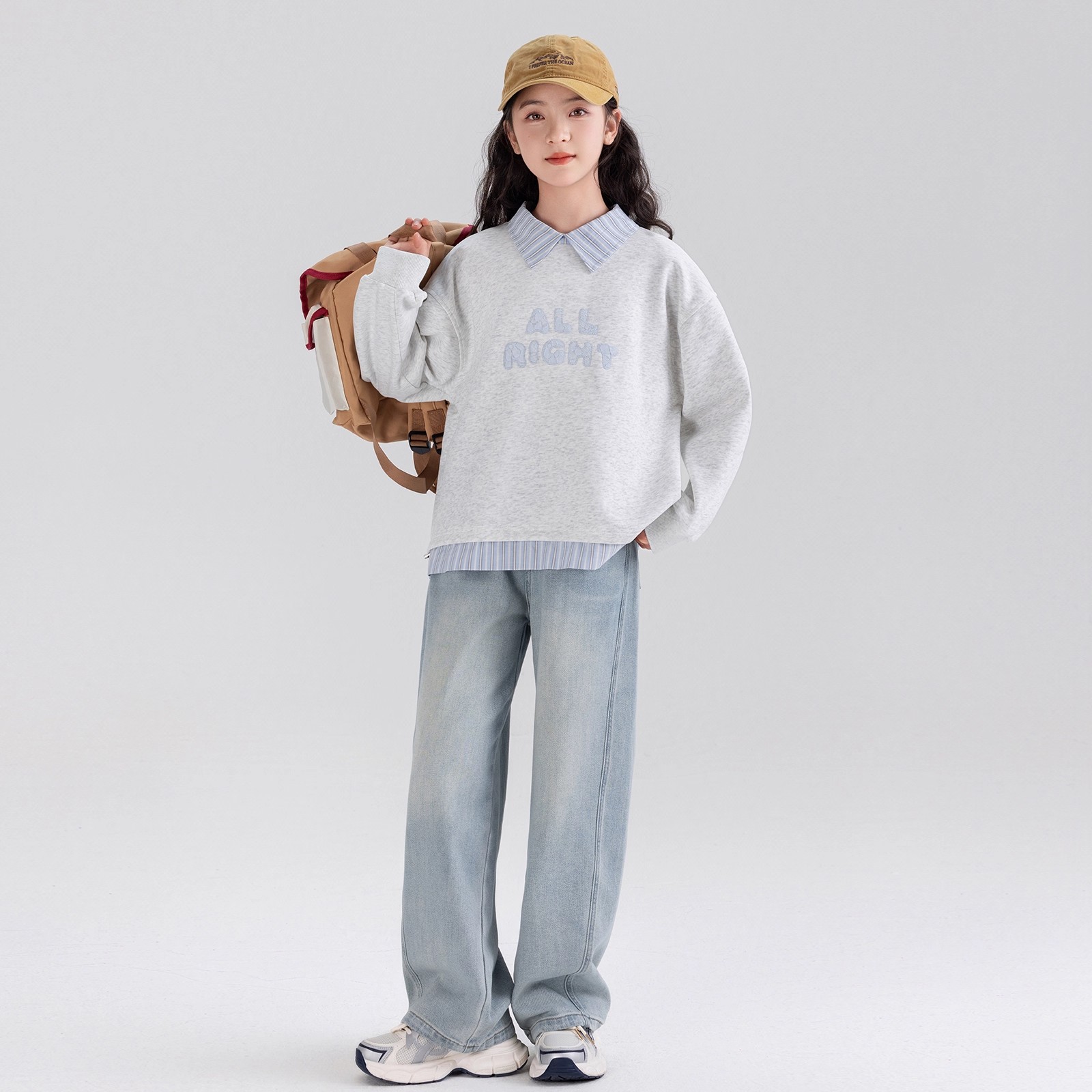 女大童秋季 初中生女孩假两件打底衫 洋气上衣 2025新款 女童卫衣秋装