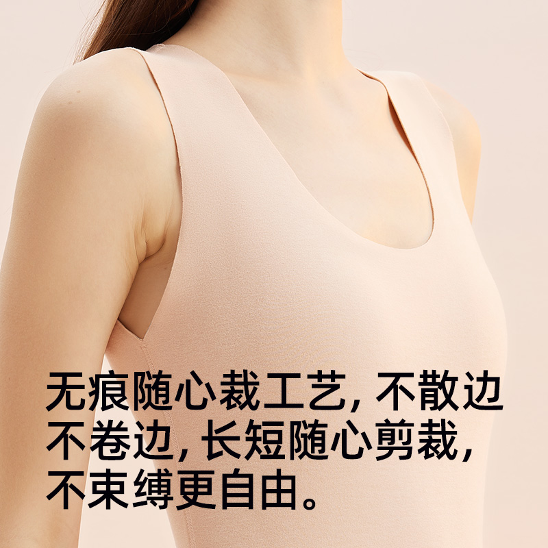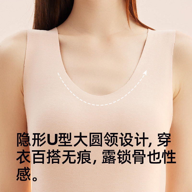 健丹鸟蚕丝羊毛保暖背心女无痕修身 上衣秋冬 打底内衣德绒发热无袖
