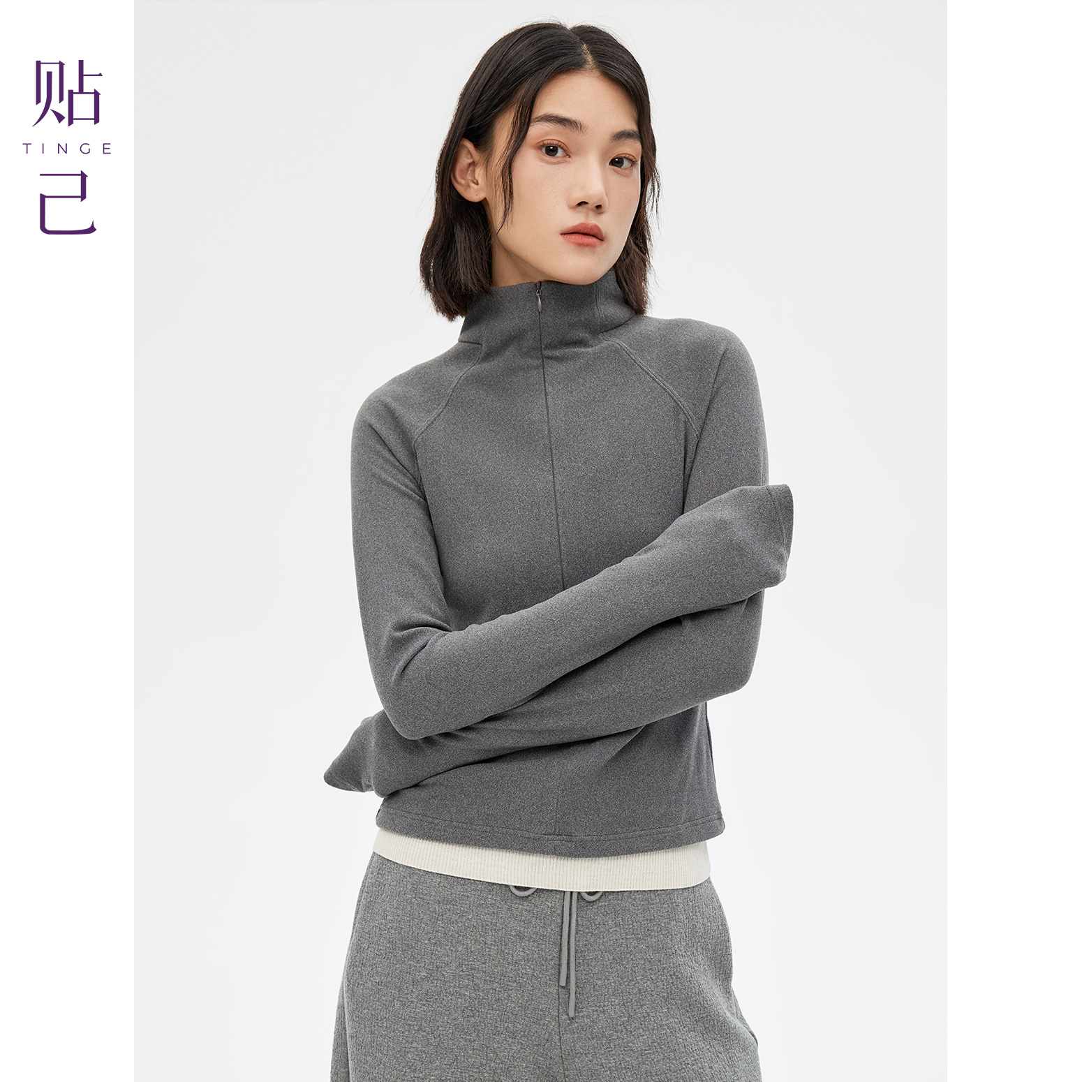 新款 TINGE贴己基础款 外套女25年秋季 拉链长袖 上衣 运动风立领修身