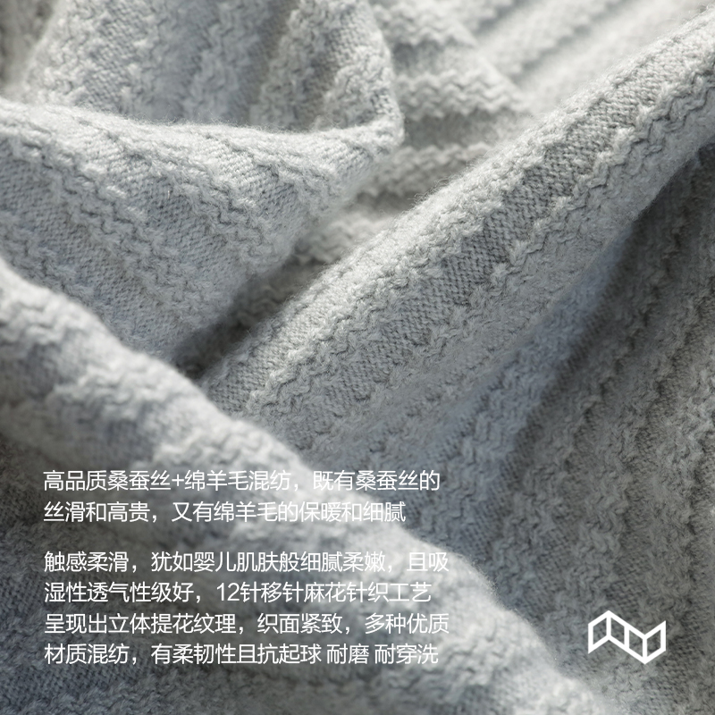 拉链宽松毛衣男中领针织衫 肌理波纹开衫 506165 新款 三福2025秋冬季