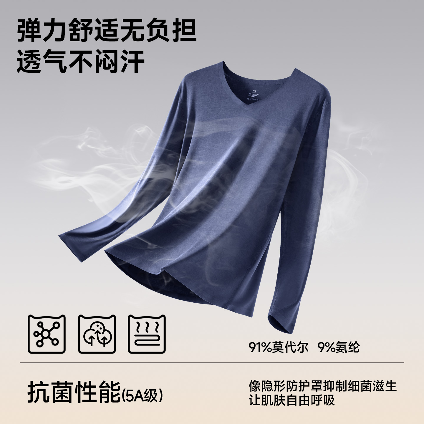 打底衫 秋衣秋裤 无痕V领莫代尔保暖衣 男2025新款 猫人保暖内衣套装