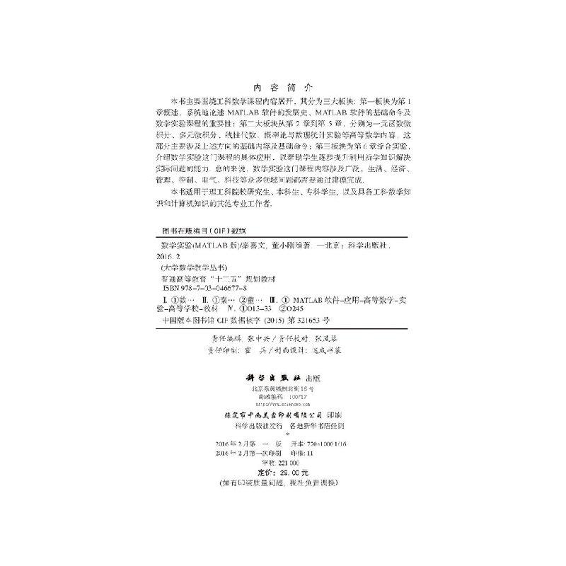 数学实验秦喜文 董小刚