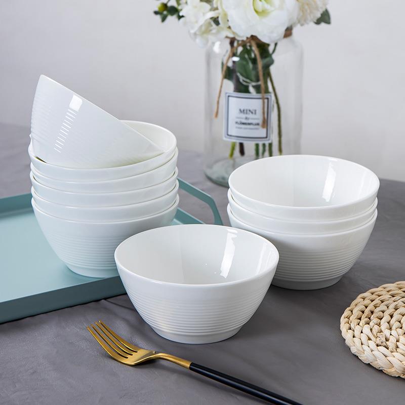 米饭碗多个装 景德镇骨瓷白色餐具碗螺纹创意家用面碗陶瓷欧式 新款