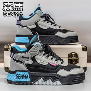 青少年高级感百搭厚底小白潮鞋 潮牌运动休闲板鞋 秋季 森马高帮男鞋