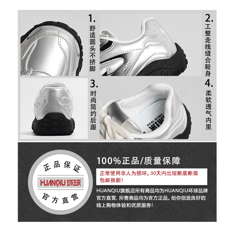 女款 休闲运动鞋 2025春秋季 小众设计登山鞋 新款 环球银色复古德训鞋