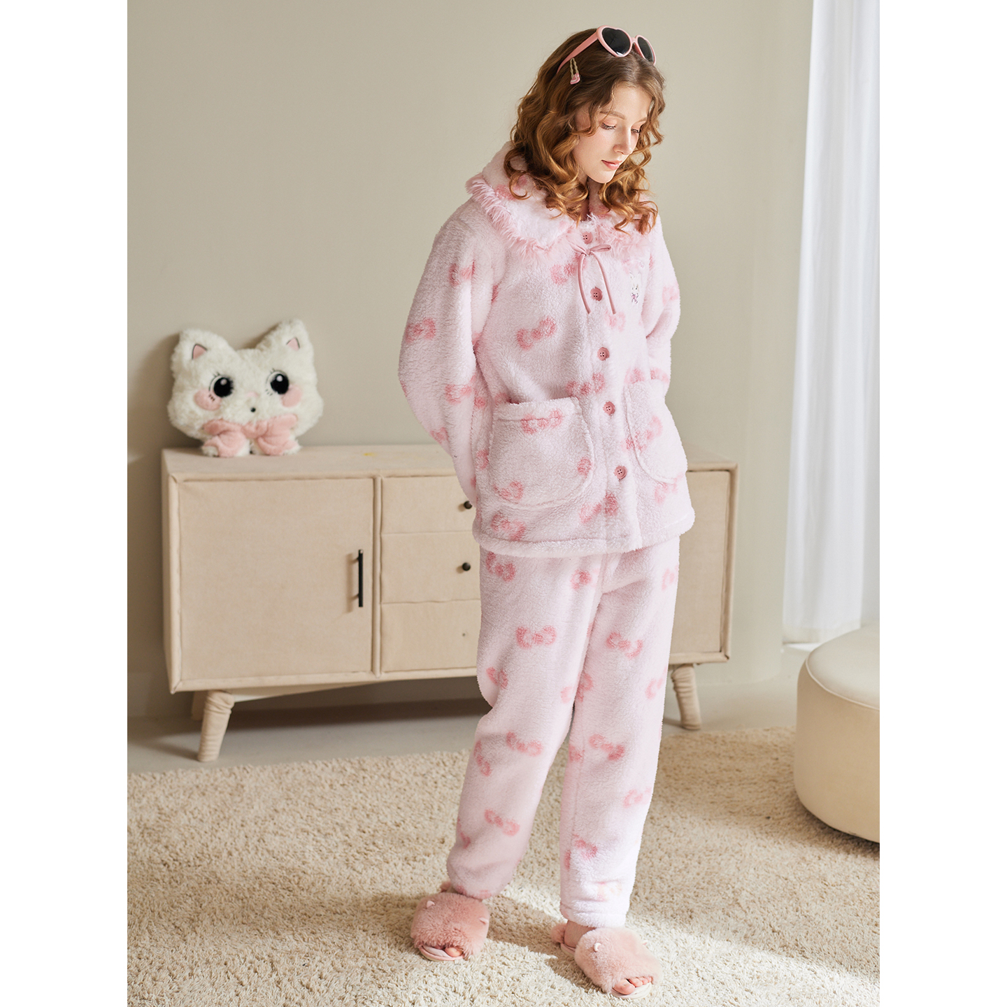 家居服套装 芬腾珊瑚绒女睡衣秋冬季 加绒加厚抗静电法兰绒可爱女款