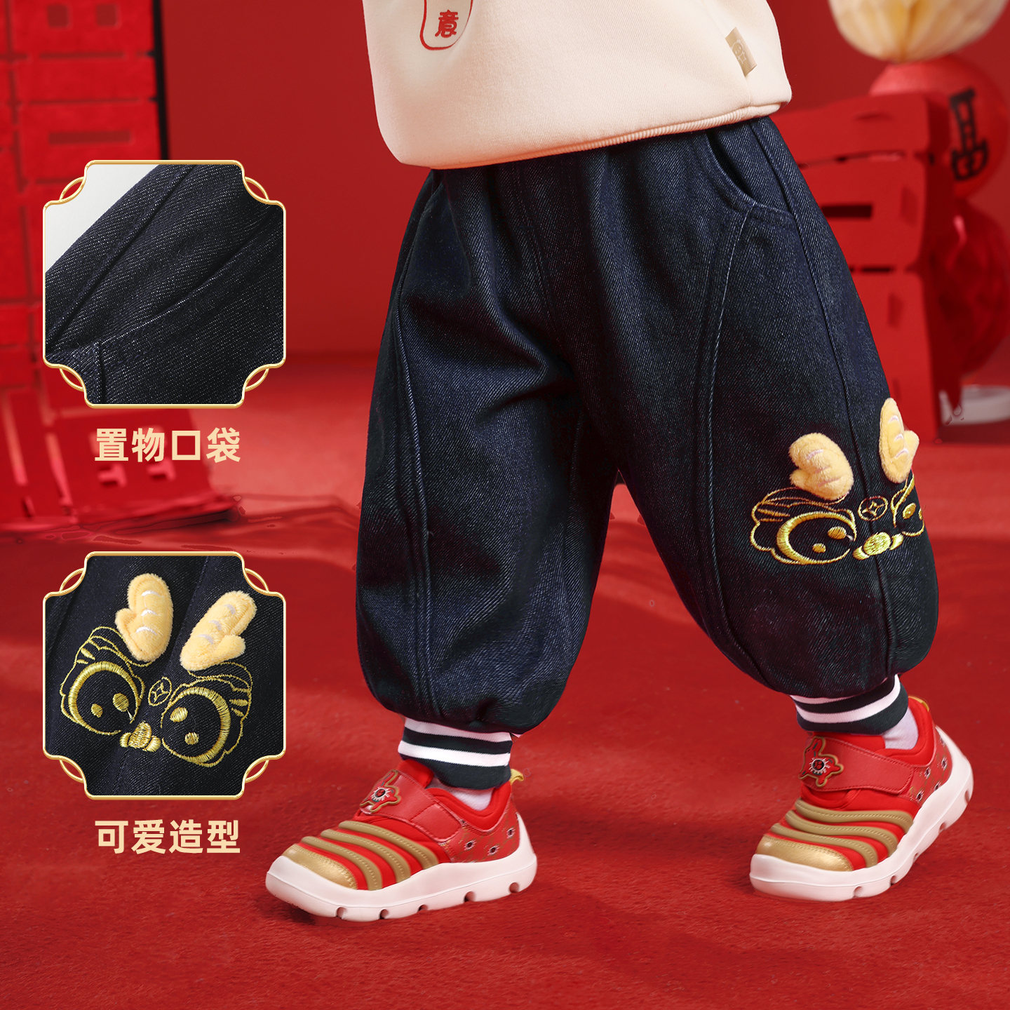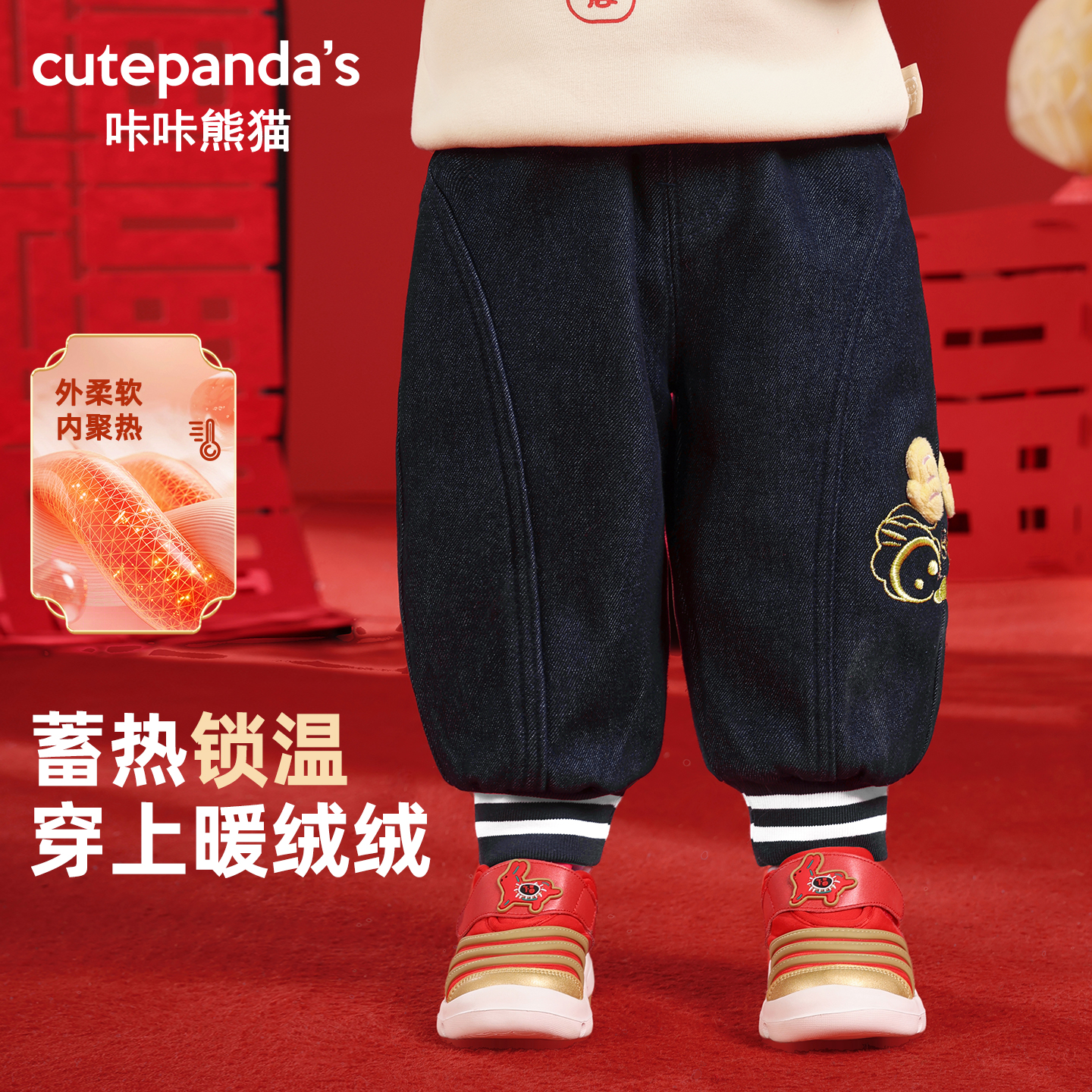 保暖牛仔裤 咔咔熊猫婴儿加绒裤 男童女童冬季 儿童加厚长裤 潮 子冬装