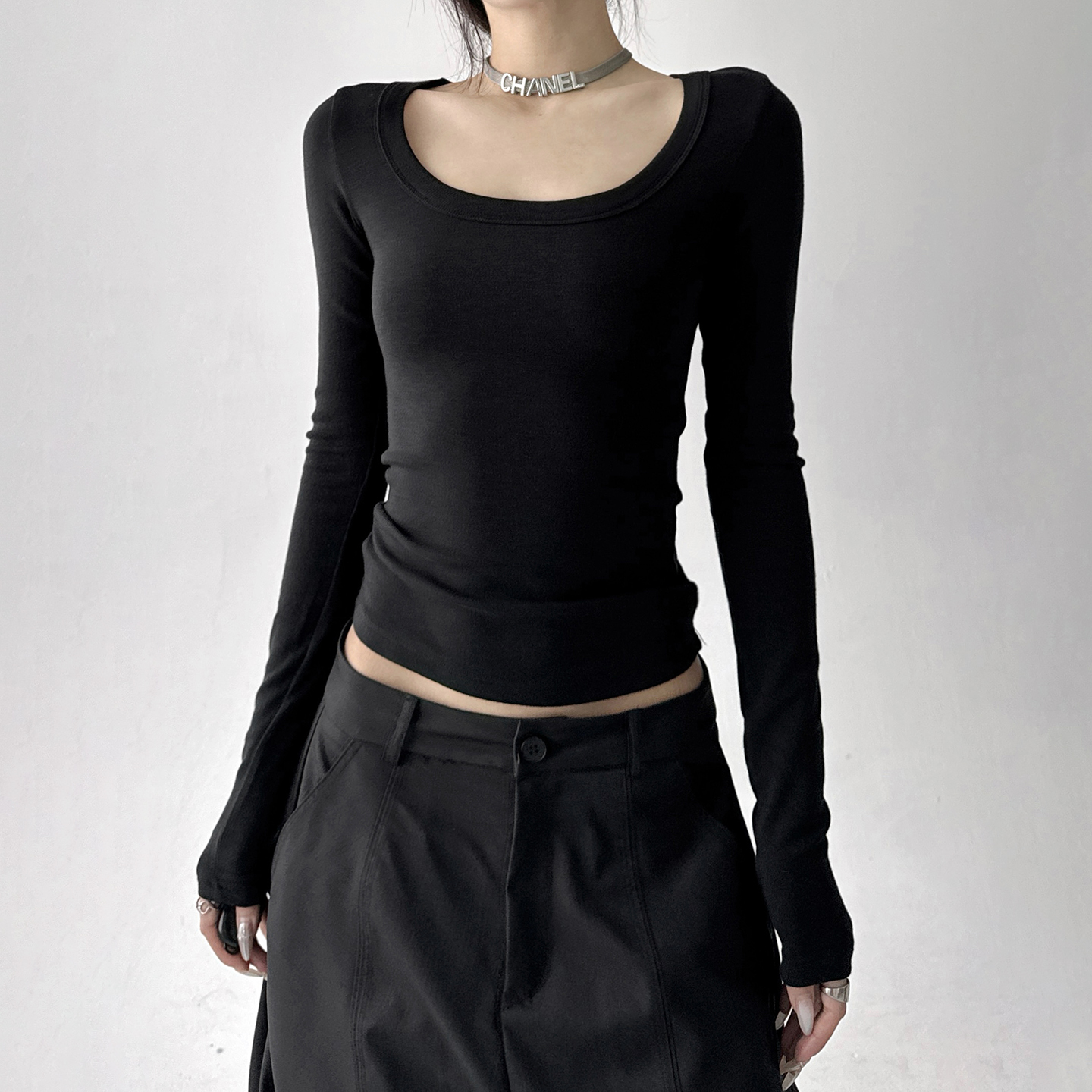 打底衫 修身 莱赛尔天丝T恤女亨利领长袖 紧身内搭上衣 Chapelle
