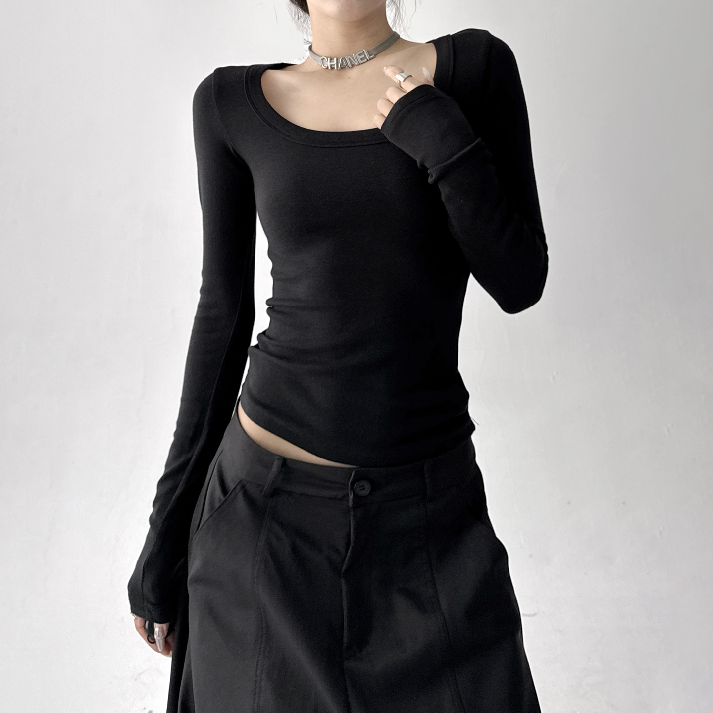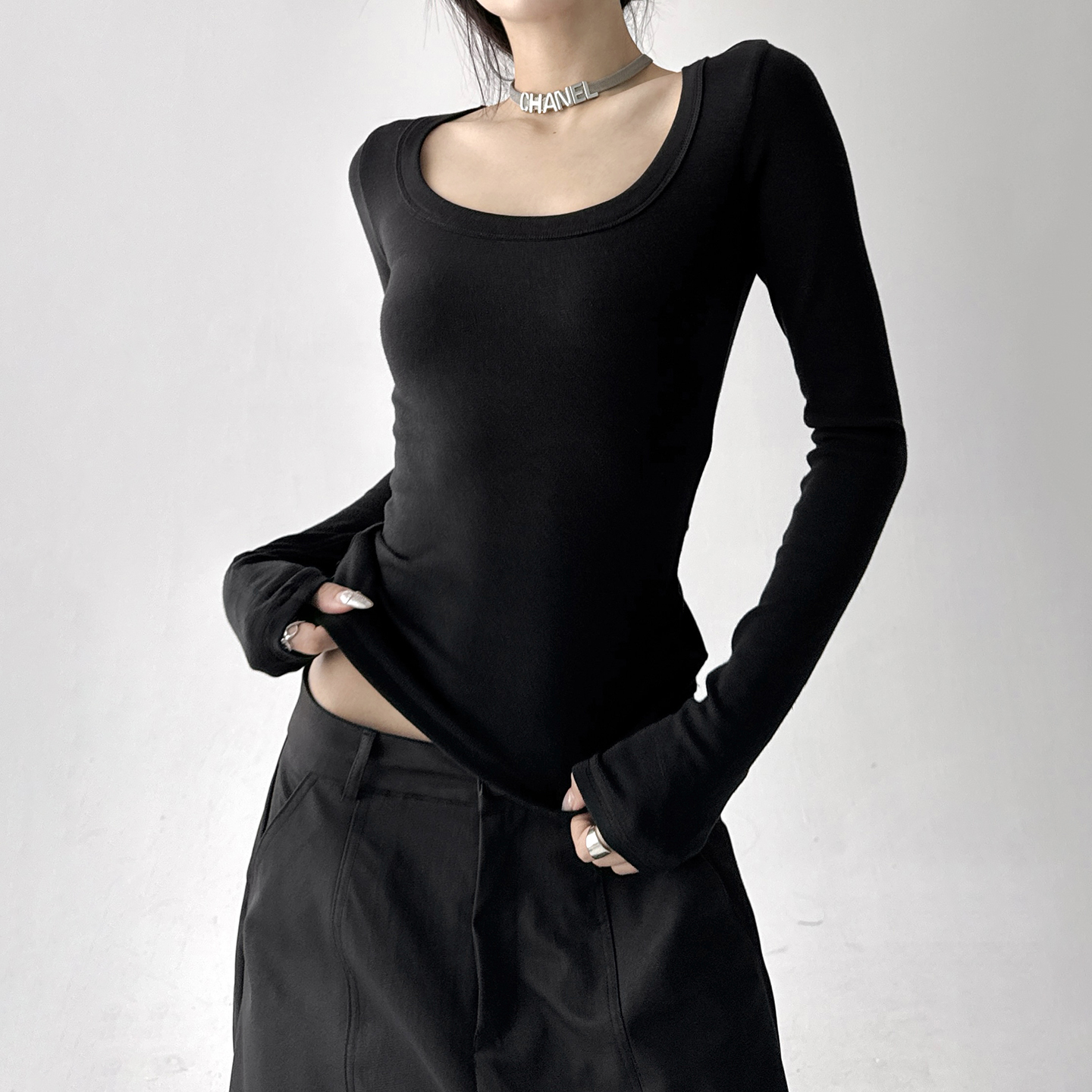 舒适纯色百搭打底衫 2025秋季 t恤男女款 拇指白小T二代纯棉长袖