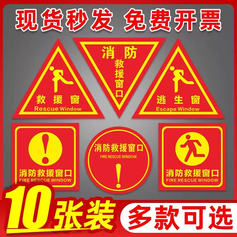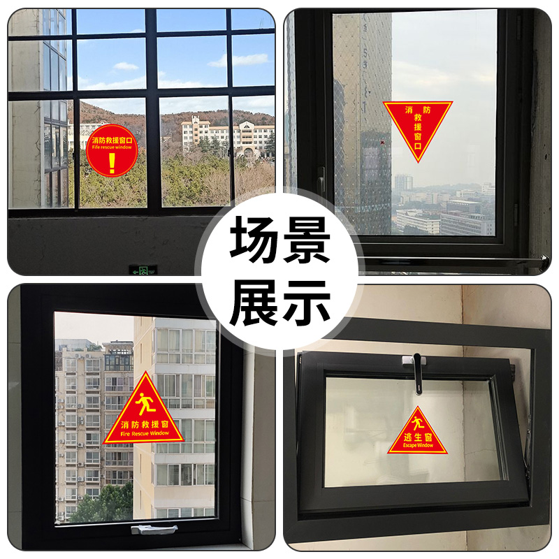 消防救援窗口标识贴紧急逃生窗贴安全标志消防应急防火示意图消防救援窗提示贴逃生窗双面玻璃贴纸指示牌D811
