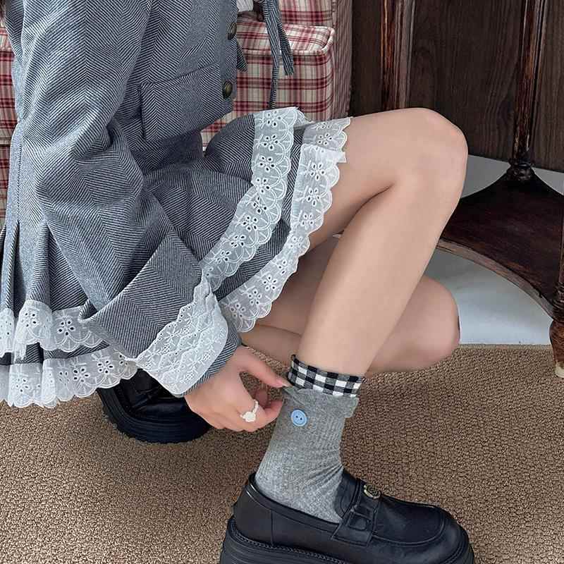 小腿袜子女春秋季 JK潮 过膝袜纯棉中筒袜微压显瘦无骨长筒长袜夏季