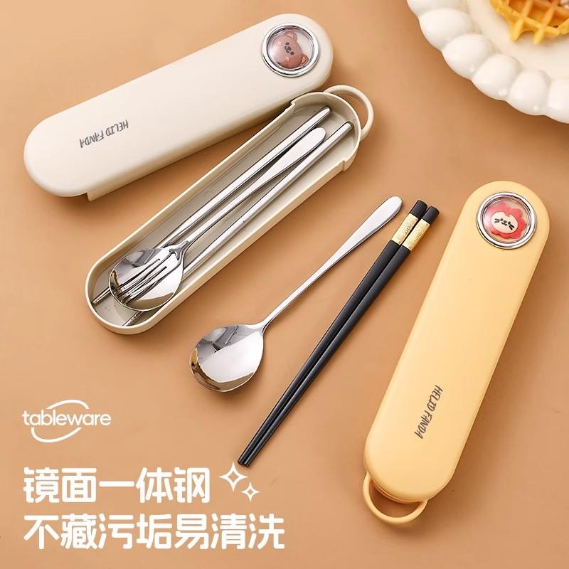 儿童餐具套组小学生上学专用一人不锈钢筷子勺子三件套可携式 收纳