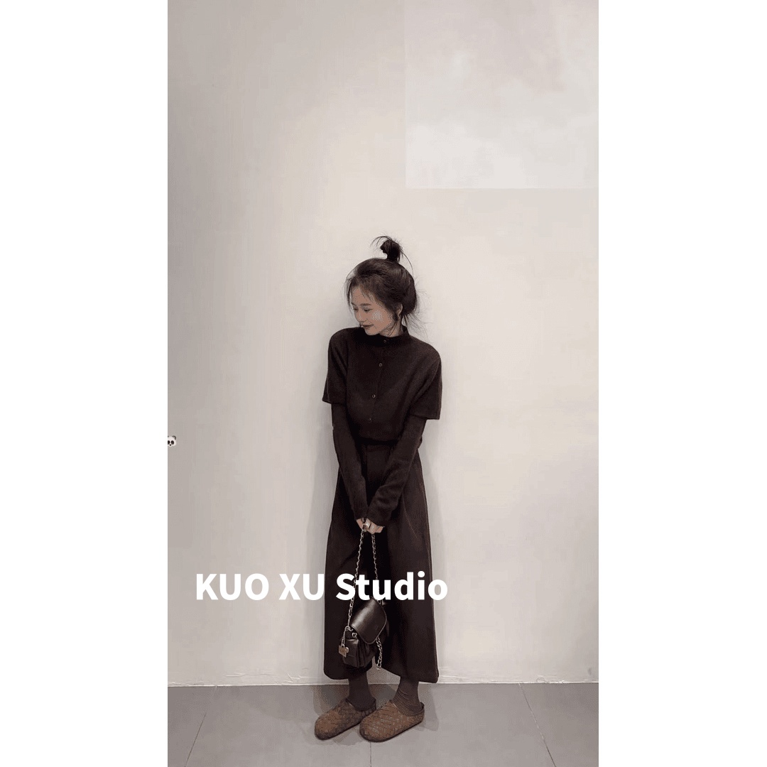 套装 秋冬气质修身 设计感外搭披肩毛衣宽松高腰阔腿裤 针织衫 女 长袖