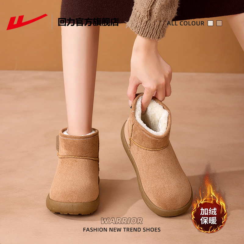 加绒加厚棉鞋 回力官方旗舰店雪地靴女款 外穿保暖鞋 冬季 女 2025新款