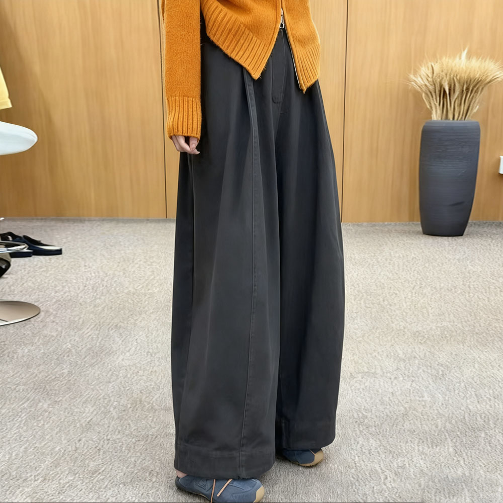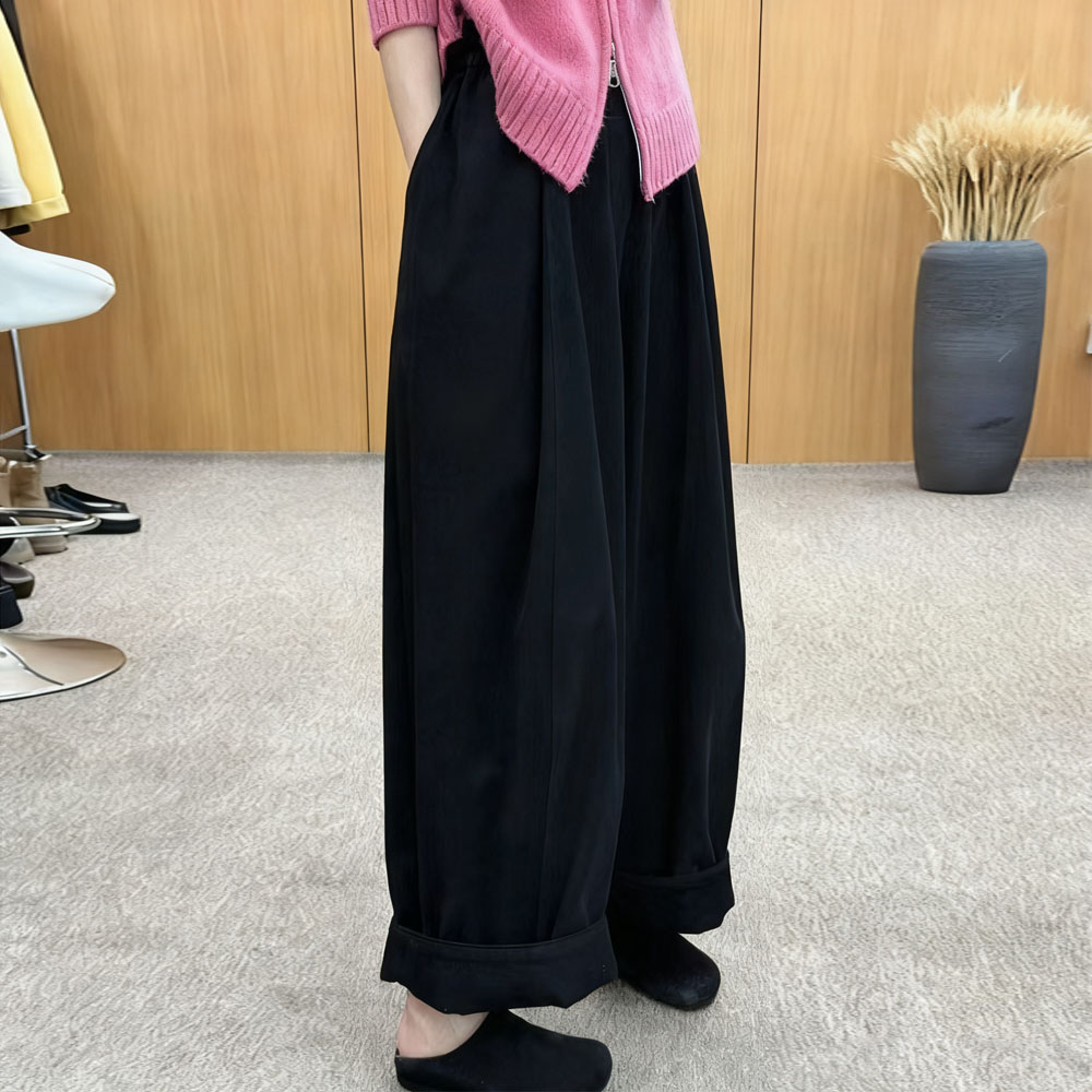 加绒加厚宽松显瘦丑萌阔腿裤 2025冬季 休闲直筒赫本长裤 时尚 女 新款