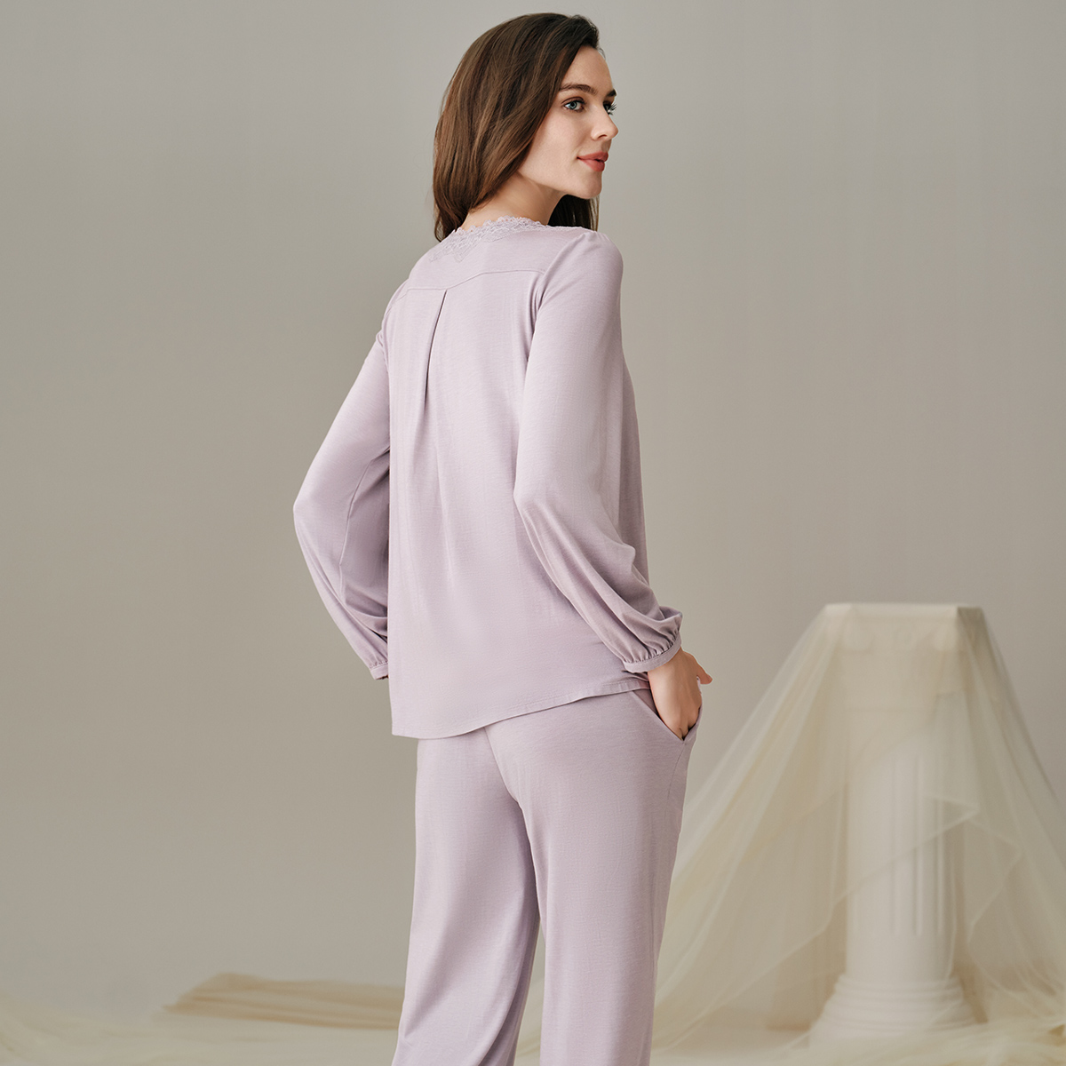 休闲家居服套装 男女同款 可出门 女长袖 安比斯情侣睡衣舒适纯棉秋季