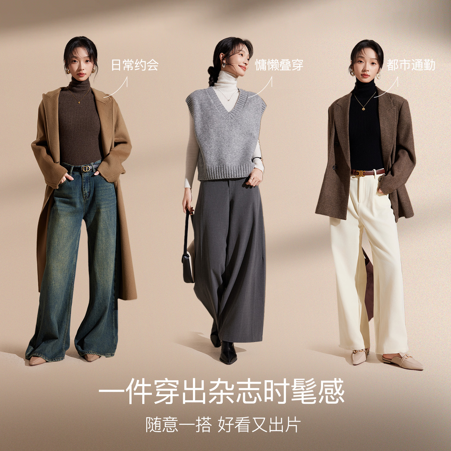 气质毛衣上衣 女士内搭可外穿针织长袖 猫人秋冬季 洋气堆堆领打底衫